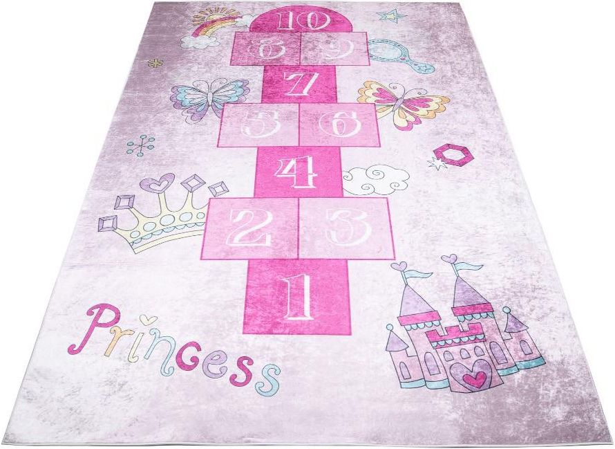 Dywan dla dziewczynki Emi 00.1718A to kolorowy dywan wykonany w technice druku cyfrowego. Jest wyjątkowo miękki, a przy tym łatwy do utrzymania w czystości. Doskonale nadaje się do pokojów dziecięcych – będzie wspaniałym miejscem do zabaw. Prezentowany dywan jest wykonany z przędzy poliestrowej, włókna są miłe w dotyku, a przy tym wytrzymałe i odporne na częste odkurzanie i pranie szamponami do dywanów. Zachowuje przy tym właściwości antyelektrostatyczne – nie elektryzuje się przy użytkowaniu, dobrze izoluje termicznie i akustycznie. Spód został pokryty antypoślizgową powłoką, dzięki czemu produkt z tej serii doskonale przylega do podłoża.