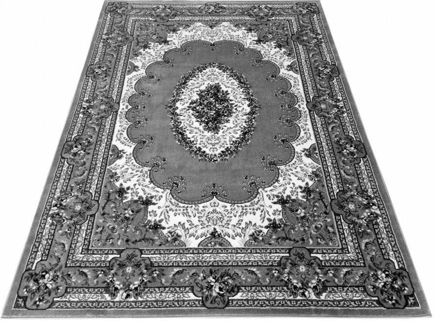Dywan tradycyjny ORIENT to piękny dywan nawiązujący do wzornictwa orientalnego i tureckiego Dywany orientalne i dywany tureckie wyróżniają się głównie obfitym zdobieniem motywami florystycznymi i ornamentami i gęstym, miękkim i krótkim runem. Pasują idealnie do wnętrz urządzonych w klasycznym stylu – świetnie prezentują się zwłaszcza z masywnymi meblami drewnianymi. Klasyczny dywan został wykonany w technice soft heat set. Do jego produkcji wykorzystano wysokiej jakości przędzę polipropylenową poddaną uszlachetnieniu przez termiczną stabilizację. Włókna wyróżniają się wyjątkową miękkością, runo jest gęste, dlatego dywan ten do złudzenia przypomina wełniany. Nie elektryzuje się, ma właściwości izolujące – akustyczne i termiczne, można łatwo czyścić go przez odkurzanie i pranie szamponami przeznaczonymi do dywanów. Jednocześnie zachowuje wysoką wytrzymałość, trwałość i odporność na zagniecenia, dlatego będzie przez długi czas ozdobą pokoju. Prezentowany dywan jest dostępny w pełnej gamie rozmiarów, dlatego mogą dopasować go Państwo do wymiarów wnętrza.