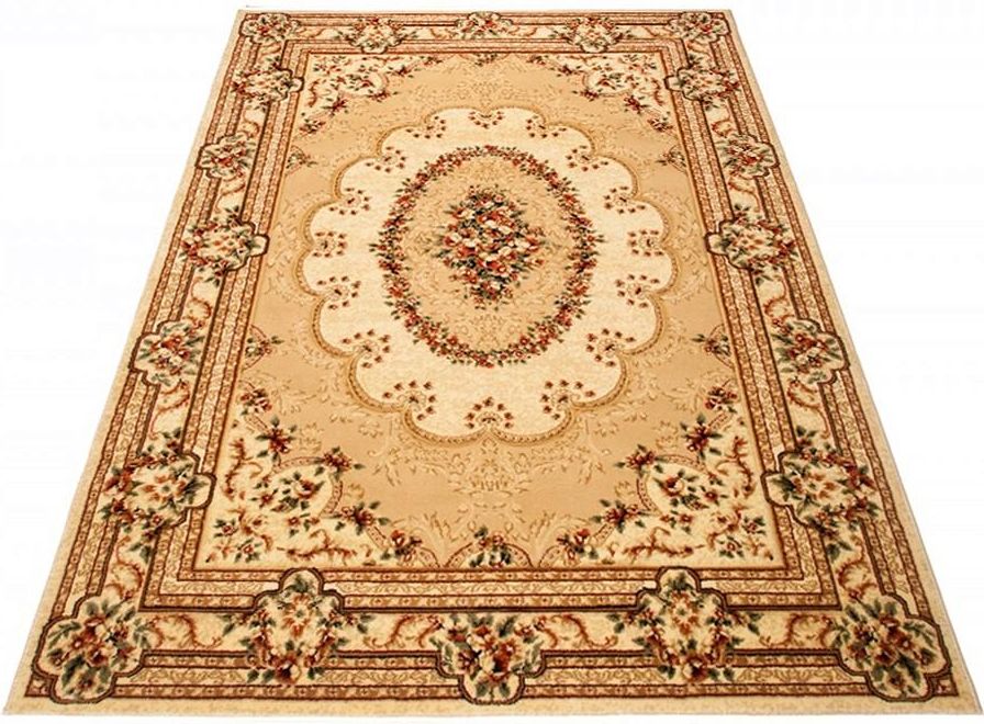 Dywan tradycyjny to piękny dywan nawiązujący do wzornictwa orientalnego i tureckiego. Jego atutem jest trójwymiarowy wzór wycinany ręcznie w runie. Wycięcia odpowiadają ornamentom na dywanie, co powoduje, że jest on wyjątkowo dekoracyjny. Dywany orientalne i dywany tureckie wyróżniają się głównie obfitym zdobieniem motywami florystycznymi i ornamentami i gęstym, miękkim i krótkim runem. Pasują idealnie do wnętrz urządzonych w klasycznym stylu – świetnie prezentują się zwłaszcza z masywnymi meblami drewnianymi. Turecki Dywan cream został wykonany w technice Heat-Set i posiada ręcznie wycinany wzór trójwymiarowy. Do jego produkcji wykorzystano wysokiej jakości przędzę polipropylenową poddaną uszlachetnieniu przez termiczną stabilizację. Włókna wyróżniają się wyjątkową miękkością, runo jest gęste, dlatego dywan ten do złudzenia przypomina wełniany. Nie elektryzuje się, ma właściwości izolujące – akustyczne i termiczne, można łatwo czyścić go przez odkurzanie i pranie szamponami przeznaczonymi do dywanów. Jednocześnie zachowuje wysoką wytrzymałość, trwałość i odporność na zagniecenia, dlatego będzie przez długi czas ozdobą pokoju. Prezentowany dywan jest dostępny w pełnej gamie rozmiarów, dlatego mogą dopasować go Państwo do wymiarów wnętrza.