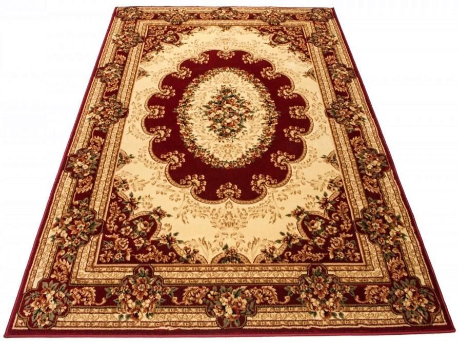 Dywan tradycyjny to piękny dywan nawiązujący do wzornictwa orientalnego i tureckiego. Jego atutem jest trójwymiarowy wzór wycinany ręcznie w runie. Wycięcia odpowiadają ornamentom na dywanie, co powoduje, że jest on wyjątkowo dekoracyjny. Dywany orientalne i dywany tureckie wyróżniają się głównie obfitym zdobieniem motywami florystycznymi i ornamentami i gęstym, miękkim i krótkim runem. Pasują idealnie do wnętrz urządzonych w klasycznym stylu – świetnie prezentują się zwłaszcza z masywnymi meblami drewnianymi. Dywan został wykonany w technice Heat-Set i posiada ręcznie wycinany wzór trójwymiarowy. Do jego produkcji wykorzystano wysokiej jakości przędzę polipropylenową poddaną uszlachetnieniu przez termiczną stabilizację. Włókna wyróżniają się wyjątkową miękkością, runo jest gęste, dlatego dywan ten do złudzenia przypomina wełniany. Nie elektryzuje się, ma właściwości izolujące – akustyczne i termiczne, można łatwo czyścić go przez odkurzanie i pranie szamponami przeznaczonymi do dywanów. Jednocześnie zachowuje wysoką wytrzymałość, trwałość i odporność na zagniecenia, dlatego będzie przez długi czas ozdobą pokoju. Prezentowany dywan jest dostępny w pełnej gamie rozmiarów, dlatego mogą dopasować go Państwo do wymiarów wnętrza.