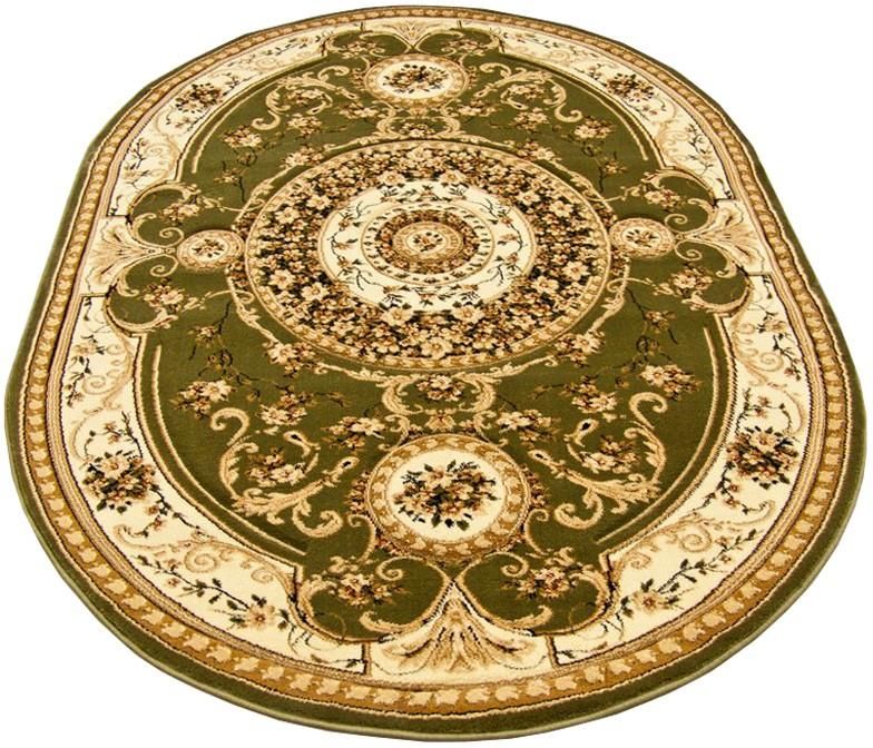 Dywan tradycyjny to piękny dywan nawiązujący do wzornictwa orientalnego i tureckiego. Jego atutem jest trójwymiarowy wzór wycinany ręcznie w runie. Wycięcia odpowiadają ornamentom na dywanie, co powoduje, że jest on wyjątkowo dekoracyjny. Dywany orientalne i dywany tureckie wyróżniają się głównie obfitym zdobieniem motywami florystycznymi i ornamentami i gęstym, miękkim i krótkim runem. Pasują idealnie do wnętrz urządzonych w klasycznym stylu – świetnie prezentują się zwłaszcza z masywnymi meblami drewnianymi. Turecki Dywan owal lemon green został wykonany w technice Heat-Set i posiada ręcznie wycinany wzór trójwymiarowy. Do jego produkcji wykorzystano wysokiej jakości przędzę polipropylenową poddaną uszlachetnieniu przez termiczną stabilizację. Włókna wyróżniają się wyjątkową miękkością, runo jest gęste, dlatego dywan ten do złudzenia przypomina wełniany. Nie elektryzuje się, ma właściwości izolujące – akustyczne i termiczne, można łatwo czyścić go przez odkurzanie i pranie szamponami przeznaczonymi do dywanów. Jednocześnie zachowuje wysoką wytrzymałość, trwałość i odporność na zagniecenia, dlatego będzie przez długi czas ozdobą pokoju. Prezentowany owalny turecki dywan lemon green jest dostępny w pełnej gamie rozmiarów, dlatego mogą dopasować go Państwo do wymiarów wnętrza.