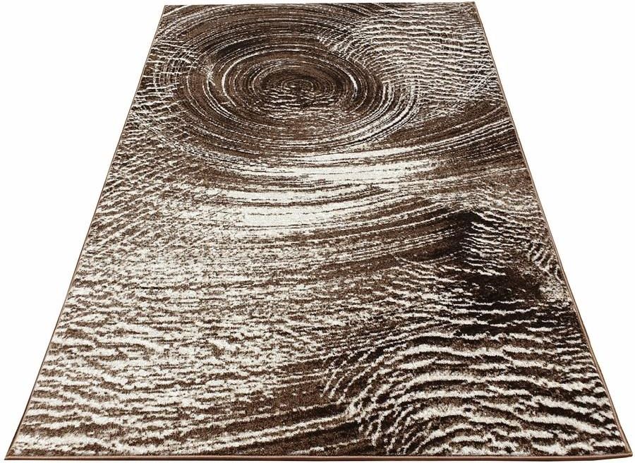 Dywan Lapiso SOFT 255 brown z kolekcji Lapiso to prawdziwa perełka dla miłośników nietuzinkowych wzorów i głębokich barw. Dominującym kolorem dywanu jest brąz, który nadaje mu ciepła i elegancji, idealnie komponując się z różnorodnymi wnętrzami. Kolor ten jest przełamany subtelnymi odcieniami beżu i szarości, które dodają dywanowi głębi i dynamiki. Wzór dywanu jest wyjątkowo intrygujący - przypomina wirujące fale lub smugi światła, które tworzą hipnotyzujący efekt. Centralna część dywanu przyciąga uwagę spiralnym motywem, który stopniowo rozchodzi się na boki, tworząc wrażenie ruchu i płynności. Kształt dywanu jest klasycznie prostokątny, co sprawia, że jest on uniwersalny i łatwy do dopasowania do różnych pomieszczeń. Dywan nie posiada frędzli, co dodaje mu nowoczesnego charakteru. Jeśli szukasz inspiracji na urządzenie wnętrza z dywanem Lapiso SOFT 255 brown, wyobraź sobie przestronny salon z wysokimi oknami, przez które wpada naturalne światło, podkreślając głębię kolorów dywanu. Meble w odcieniach szarości i beżu, z dodatkiem drewnianych elementów, stworzą harmonijną całość. Na ścianach mogą zawisnąć obrazy w podobnej tonacji, a na kanapie miękkie poduszki w geometryczne wzory, które będą nawiązywać do dynamiki dywanu. Lampa stojąca z abażurem w kolorze miedzi lub złota doda wnętrzu przytulności i elegancji. W takim otoczeniu dywan Lapiso SOFT 255 brown stanie się centralnym punktem, przyciągającym wzrok i nadającym charakteru całemu pomieszczeniu. Dywan Lapiso SOFT 255 brown to idealny wybór dla osób ceniących sobie nowoczesny design i oryginalne wzornictwo. Jego głęboka kolorystyka i unikalny wzór sprawiają, że będzie on doskonałym dodatkiem do wnętrz urządzonych w stylu modern czy skandynawskim. Zachęcamy do zakupu tego wyjątkowego dywanu, który z pewnością przypadnie do gustu osobom poszukującym wyrazistego i eleganckiego akcentu w swoim domu.