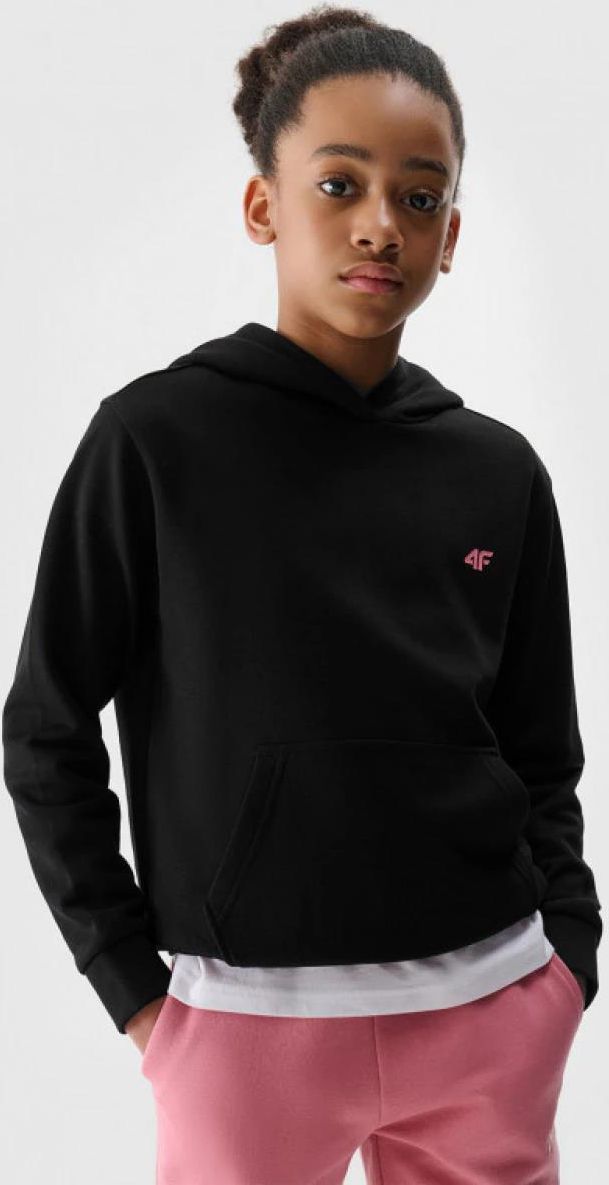Dziewczęca bluza dresowa nierozpinana z kapturem 4F 4FJWMM00TSWSF1316 - czarna Wrocław