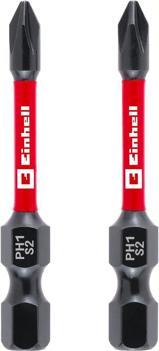 Zestaw dwóch wytrzymałych bitów skrętnych PH1 S2 o długości 50 mm, wykonanych z wysokiej jakości stali S2, zapewniających trwałość i niezawodność podczas pracy.