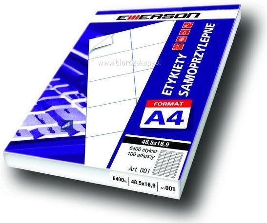 Etykiety EMERSON A4 op.100 105,0 x 42,4 (14) Symbol SKU produktu ETK3320 Kod EAN 5902178065193 OPIS PRODUKTU Etykiety samoprzylepne dostarczane są na arkuszach o formacie A4. Współpracują ze wszystkimi rodzajami drukarek igłowych, atramentowych i z większością drukarek laserowych (patrz zalecenia …