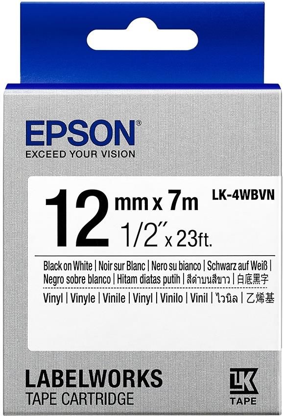 Epson LabelWorks LK-4WBQ Winylowe taśmy EPSON przeznaczone na krzywe, zaokrąglone i chropowate powierzchnie. Nadają się również narówne, gładkie i płaskie powierzchnie. Odporne na niekorzystane warunki atmosferyczne, sprawdzą się zarówno wewnątrz jak i na zewnątrz. Najważniejsze cechy: Biała taśma z czarnym nadrukiem Szerokość 12mm, długość 7m Winylowe taśmy Epson to elastyczne, bardzo odporne taśmy do wszechstronnego zastosowania. Odporne taśmy LK zapewniają długoletnią trwałość Wodoodporne i trwałe zarówno w cieple, jak i zimnie Taśma posiada dzielony wzdłuż podkład zabezpieczający klej Taśmy winylowe charakteryzują się wysoką odpornością na szkodliwe warunki zewnętrzne: Promieniowanie UV Skrajne temperatury (od -40 °C do 90 °C) Wodę, olej, środki chemiczne (etanol, octan etylu, toluen, heksan, aceton)