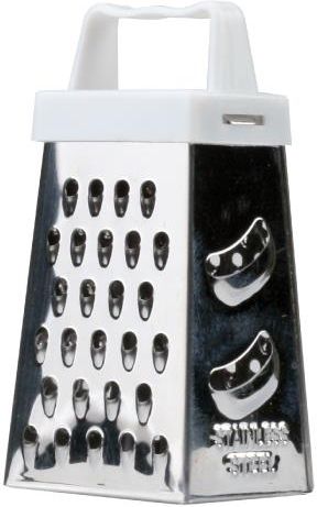 Mini tarka kuchenna do przypraw FACKELMANN 45436 Mini tarka wykonana z wysokiej jakości tworzywa. Dzięki swoim poręcznym rozmiarom, bez problemu zabierzesz ją na piknik lub biwak ! Kod artykułu: 45436 Materiał: Stal nierdzewna inox, Tworzywo sztuczne Zmywarka: Tak Wysokość: 7,5 cm Szerokość: 3,6 cm Głębokość: 2,8 cm Kolor: Biały Mini tarka niemieckiej firmy Fackelmann została wykonana z wysokiej jakości nierdzewnej stali oraz wytrzymałego tworzywa. Niewielki rozmiar tarki pozwala na zabranie jej na piknik lub biwak – będzie ona również doskonałym dodatkiem do kuchennych gadżetów. Z łatwością zetrzemy na niej ser, cebulę, czosnek, czekoladę czy cytrynę.