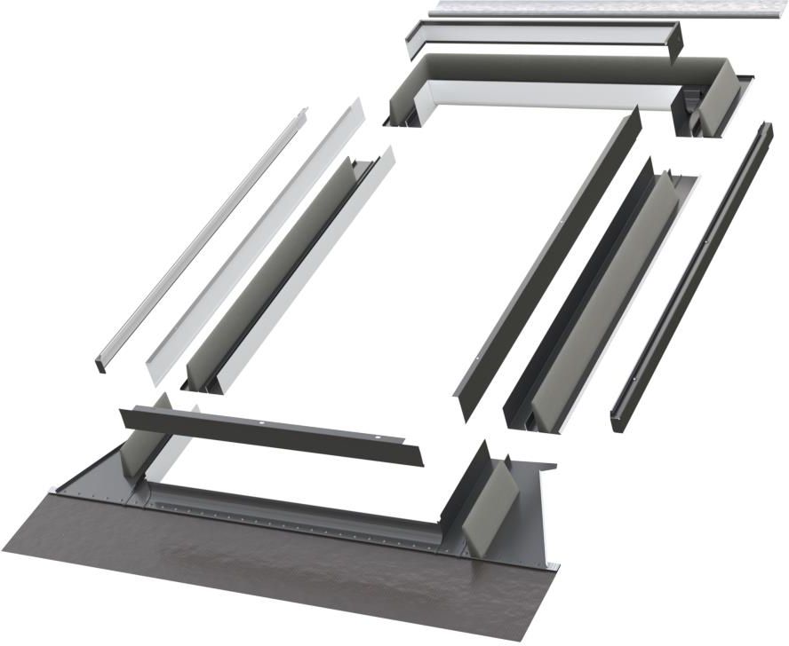 Kołnierz do okna dachowego FAKRO EHU-A RAL 7022 ATF 78x118 do pokryć wysokoprofilowanych Kołnierz uszczelniający, który pozwala na szczelne połączenie okna z profilowanymi pokryciami dachowymi takimi jak: dachówka, blacha wysokoprofilowana. Może być stosowany do pokryć dachowych o wysokości profilu do 90 mm. Stosowany przy wymianie okien konkurencji na okna FAKRO bez naruszenia istniejących szpalet. Kołnierz umożliwia dopasowanie go do głębokości montażu okna wynikającej z osadzenia nowego okna na szpaletach pozostałych po wymienianym oknie. Fartuch aluminiowy.