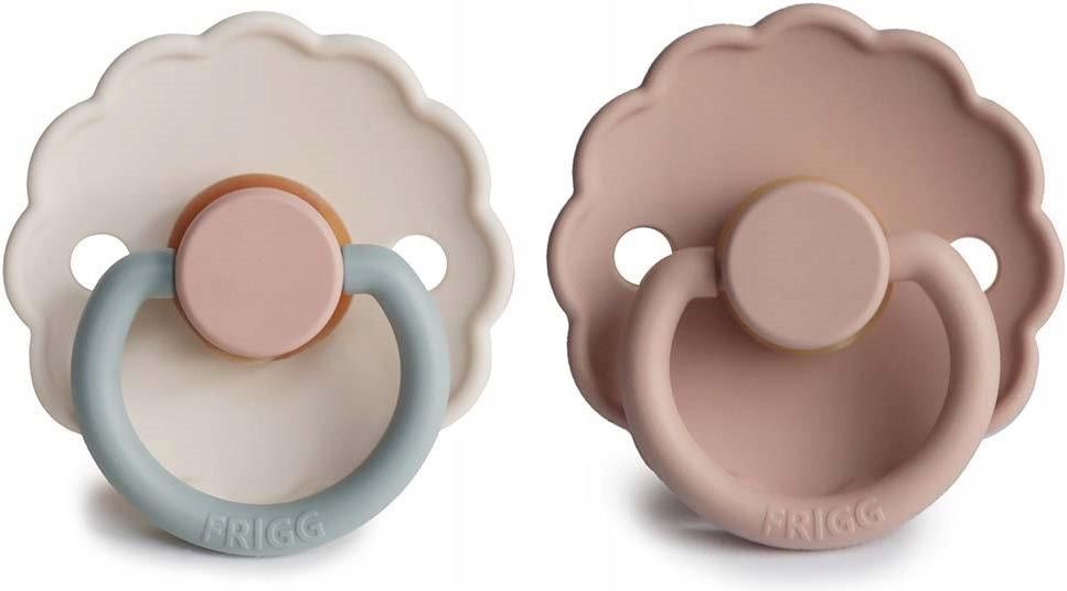 FRIGG Smoczki 0-6m Daisy Kauczuk 2-Pack Blush/Cotton Candy - Rozmiar 1 producent: Frigg Smoczki marki FRIGG to esencja piękna w swojej prostocie. Charakterystyczny styl boho to element wyróżniający tej Duńskiej marki. Tarcza smoczka jest odpowiednio wyprofilowana aby nie dodykać deliatnej skóry …