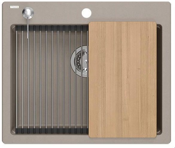 Wyobraź sobie kuchnię… Twoją kuchnię… Przyjdź do nas, a my dołożymy wszelkich starań, aby Twoje wyobrażenie stało się rzeczywistością! QuadronPolska to firma powołana do życia i nakręcana przez pasjonatów – ludzi z ogromnym doświadczeniem rynkowym w branży produktów do strefy mokrej w kuchniach domowych. Jesteśmy dumni z naszego dotychczasowego dorobku zawodowego, a wszystkie najlepsze doświadczenia, zarówno produktowe udoskonalamy i rozwijamy w naszej codziennej pracy dla marki Quadron. Zlewozmywak granitowy Quadron GraniteQ Zlewozmywaki GraniteQ wytwarzane są z drobnych cząsteczek granitu (75-80% finalnego wyrobu) - połączonych ze sobą wysokiej jakości spoiwem - dzięki czemu charakteryzują się wyjątkową wytrzymałością oraz odpornością na zróżnicowane temperatury i charakter wykonywanych w ich obrębie prac. Materiał dostępny w 5 kolorach: snow white to gładki, śnieżny blask silver stone to metalizowana, kamienna natura pure carbon to bezbrzeżna, atramentowa głębia black dotted to kropkowana, zastygła lawa wulkaniczna soft taupe to ponadczasowa, naturalna barwa ziemi Model: KURT 110 Kolor: szarobeżowy / spft toupe Wymiary zlewozmywaka: szerokość: 59,5 cm długość: 50 cm głębokość: 21,5 cm Wymiary komory: szerokość: 53,5 cm długość: 37 cm Pojemność: 42 l Rozmiar podbudowy szafki: od 60 cm Sposób montażu: wpuszczany Waga: 18,1 kg Odpływ: save space (przyścienny system oszczędzania miejsca w szafce pod zlewozmywakiem) korek manualny / zatyczkowy syfon 3 1/2" z możliwością podłączenia zmywarki Otwory: 2 x 35 mm (+ 1 x 35 mm do samodzielnego wybicia) Gwarancja: 10 lat KURT 110 to granitowy zlewozmywak o pojedynczej, niezwykle pojemnej komorze, pomimo, iż niezbędna podbudowa to nadal jedynie 60 cm, czyli najbardziej popularny rozmiar szafki kuchennej. Zlew standardowo wyposażony jest w duży komplet akcesoriów dodatkowych, znacznie ułatwiających wykonywanie prac w obrębie komory. Na rancie zamontowany został dozownik płynu do mycia naczyń, dzięki czemu unikamy umieszczania dodatkowych pojemników z detergentami, a sam płyn nie wylewa się poza ranty zlewu. Wewnątrz komory zlewozmywaka zastosowany został dodatkowy rant, na którym oparcie znajdują zwijana Qmata. Deska ma swoje miejsce na wierzchu komory. Zastosowanie tych elementów, powiększa powierzchnię roboczą w kuchni i pozwala z powodzeniem wykorzystać komorę jako dodatkowe miejsce robocze, do krojenia, czy suszenia. Zestaw wyposażony jest w: zlewozmywak granitowy 59,5 x 50 cm syfon z przyścienny system SAVE SPACE, dzięki temu zaoszczędzisz dużo miejsca w szafce pod zlewozmywakiem! duże sito wykonane ze stali szlachetnej Qmata stalowa z czarnym silikonem 38 x 25 cm dozownik do płynu 350 ml - stal szlachetna Bukowa drewniana deska do krojenia 40,6 x 24 cm Stalowa wkładka ociekowa 38 x 23 x 6 cm Stalowa wkładka ociekowa 38 x 23 x 6 cm Jak wybić dodatkowy otwór w zlewozmywaku? Zlewozmywak granitowy posiada nafrezowane miejsca do samodzielnego wybicia otworu, co daje możliwość montażu akcesoriów takich jak dozownik. Na spodzie zlewozmywaka znajdują się nafrezowane otwory, na wierzchu zlewozmywaka miejsca wybijania oznaczone naklejkami. Nie zrywaj naklejki przed wykonaniem otworu. Upewnij się, że naklejka jest we właściwym miejscu – na środku otworu. Naklejka ma jedynie charakter informacyjny i należy upewnić się, że znajduje się w środku otworu, aby uniknąć ryzyka uszkodzenie zlewu. Przygotuj: młotek, wybijak, zaokrąglony pilnik Umieść zlewozmywak we wcześniej przygotowanym dla modelu zlewu otworze w blacie. Przyłóż okrągły wybijak o średnicy 8-12 mm na środku oznaczonej naklejki. Ostrożnie uderz młotkiem w wybijak, następnie okrągłym pilnikiem wygładź krawędzie otworu. Należy dochować staranności aby nie uderzyć młotkiem w powierzchnię zlewozmywaka. Twoje szczęście jest naszą przyjemnością! Zapraszamy do zapoznania się z pozostałymi produktami marki Quadron! Codzienne dążenie do spełniania oczekiwań klientów jest nie tylko naszą pracą, ale energią, która napędza każdy kolejny dzień. W razie dodatkowych pytań zapraszamy do skorzystania poprzez "pytanie do sprzedającego".