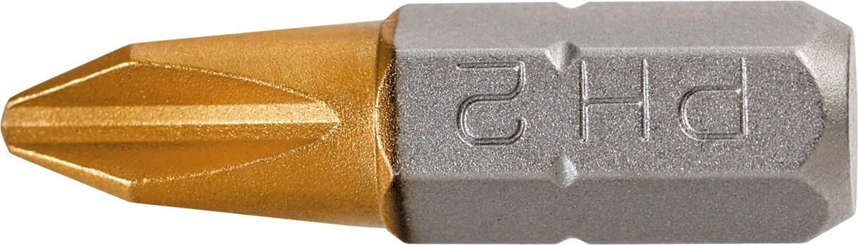 GRAPHITE 57H962 Końcówki wkrętakowe PH3 x 25 mm, 2 szt. Końcówki wkrętakowe GRAPHITE (nr ref. 57H962) typu PH3, przeznaczone do wkręcania/wykręcania wkrętów i śrub z łbem typu Phillips o rozmiarze 1 mm. Pokrycie powierzchni końcówek azotkiem tytanu (złoty kolor) znacząco przedłuża żywotność …