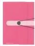 Teczka A4 z gumką - Różowa - folia PP, - z nadrukiem projektowym, - 3 klapy, - elastyczna gumka, - z przyciskiem wirowym, - nieprzezroczysty różowy.