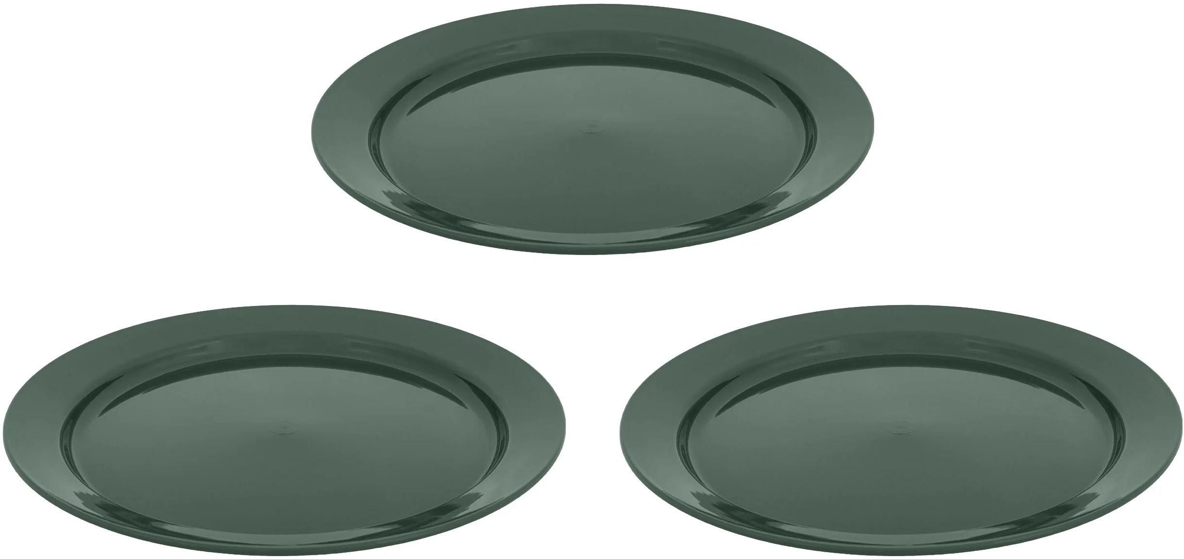 Zestaw składający się z trzech lekkich i wytrzymałych talerzy płaskich o średnicy 24 cm. Wykonane zostały z elastycznego tworzywa sztucznego przyjaznego dla środowiska i wolnego od bisfenolu (BPA-free).