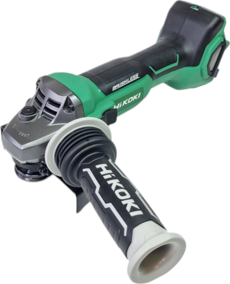 HIKOKI AKUMULATOROWA SZLIFIERKA KĄTOWA G1813DA W4Z (BEZ AKUMULATORA I ŁADOWARKI) Opis Produktu Bezszczotkowa szlifierka tarczowa G1813DA to nowoczesne i wydajne narzędzie akumulatorowe o średnicy tarczy 125 mm, przeznaczone do profesjonalnych zastosowań. Dzięki silnikowi bezszczotkowemu, szlifierka zapewnia moc wyjściową na poziomie 750 W – porównywalną z narzędziami sieciowymi, a przy tym oferuje wszystkie zalety zasilania bateryjnego. Konstrukcja urządzenia została zoptymalizowana pod kątem wydajności, ergonomii i bezpieczeństwa. G1813DA wyposażono m.in. w system Kickback Protection, restart protection, miękki start, a także antywibracyjną rękojeść i nowoczesne zabezpieczenia przeciwpyłowe i przeciwwodne. Szlifierka jest kompatybilna z systemem akumulatorów 18v oraz 36V MultiVolt, co czyni ją uniwersalnym narzędziem. Najważniejsze Cechy Moc wyjściowa 750 W – jak w narzędziu sieciowym. Silnik bezszczotkowy – dłuższa żywotność, brak konieczności wymiany szczotek. Kickback Protection – zabezpieczenie przed odbiciem. Miękki start – komfort pracy i precyzyjne rozpoczęcie cięcia. Zabezpieczenie przed ponownym uruchomieniem – zwiększa bezpieczeństwo użytkownika. Odporność na pył i wodę – dzięki zmywalnym, wymiennym filtrom poliestrowym. Mała średnica uchwytu – tylko 146 mm – wygodniejsza obsługa. Dwuczęściowa osłona tarczy – osobno do cięcia i szlifowania. Współpraca z akumulatorami MultiVolt – kompatybilność z całą rodziną narzędzi. Dane techniczne Napięcie zasilania: 18 V Typ silnika: bezszczotkowy Maksymalna moc wyjściowa: 750 W Prędkość obrotowa (bez obciążenia): 8 000 obr./min Średnica tarczy: 125 mm Średnica otworu tarczy: 22,23 mm Gwint wrzeciona: M14 Obwód uchwytu: 146 mm Długość całkowita: 358 mm Wysokość: 139 mm Szerokość: 141 mm Zakres dostawy Szlifierka G1813DA W4Z (bez akumulatora i ładowarki) Osłona tarczy Podkładka i nakrętka tarczy Klucz do mocowania Rękojeść boczna