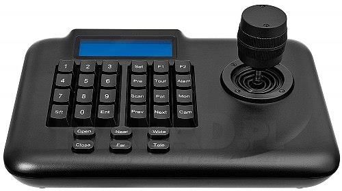 ZASTOSOWANIE PRODUKTU Klawiatura sterująca (pulpit sterujący) PX-K04 jest urządzeniem, które zapewnia wygodę przy kontroli pracy profesjonalnych systemów monitoringu wizyjnego. Urządzenie zapewnia bezproblemową współpracę z kamerami obrotowymi IPOX pracującymi w systemach analogowych: AHD ; CVI ; TVI oraz CVBS . Klawiatura zapewnia łatwą zmianę trybu pracy kamery oraz pozwala na szybkie ustawienie presetów , ścieżek , tras czy patroli . Zastosowane w urządzeniu interfejsy umożliwiają stabilną komunikację z kamerami na max. odległość 1200m. ZASTOSOWANIE PRODUKTU wyświetlacz LCD, wbudowany joystick 3D, interfejsy: RS-485, RS-232, RJ-45 (Matrix Connection), szybkość transmisji: 2400bps ~ 19200bps, odległość komunikacji: 1200m, bezpośrednie sterowanie kamerami PTZ Analog HD IPOX, max. liczba obsługiwanych kamer: 31, obsługa protokołów: Pelco-D, Pelco-P, Pelco Matrix, zasilanie: 12V DC (zasilacz w zestawie), pobór mocy: 2.5W, temperatura pracy: 0°C ~ +50°C, wilgotność: 10-90%, wymiary: 230x160x110m (szer./gł./wys.), waga: 700g, gwarancja: 24 miesiące. ZASILACZ W KOMPLECIE ZŁĄCZA PULPITU STERUJĄCEGO KLAWIATURA / WYGODNY JOYSTICK 3D SCHEMAT OPISOWY PRZYKŁADOWE SCENARIUSZE PODŁĄCZENIA