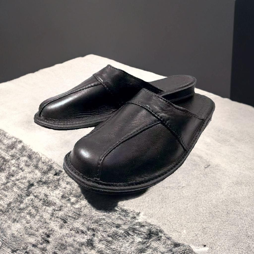 Kapcie Skórzane Męskie VIP 320 to luksusowe pantofle domowe, które łączą elegancję, wygodę i najwyższą jakość wykonania. Zaprojektowane z myślą o mężczyznach, którzy oczekują komfortu na najwyższym poziomie, stanowią doskonały wybór na co dzień. Pantofle zostały wykonane w Polsce z wyselekcjonowanej sprowadzonej z Włoch skóry cielęcej, znanej z wyjątkowej delikatności, miękkości i trwałości. Naturalna skóra gwarantuje odporność na uszkodzenia, a także zapewnia przyjemność użytkowania przez długi czas. Model VIP 320 wyróżnia się eleganckim czarnym kolorem zewnętrznym, który dodaje szyku każdej stylizacji. Wnętrze kapci wykonano z miękkiej skóry w naturalnym odcieniu, co podkreśla ich prestiżowy charakter. Perfekcyjnie wyprofilowane "noski" dla palców eliminują ryzyko obtarć i ucisku, zapewniając pełen komfort. Kapcie zostały zaprojektowane z głębokim podbiciem, które idealnie dopasowuje się do stopy, niezależnie od jej kształtu. Wnętrze wyściełane miękką skórą pod naciskiem stopy tworzy indywidualny, wygodny profil. Dodatkowo, podwyższony klin o wysokości 1,5 cm pod piętą wspiera naturalną postawę i zwiększa wygodę noszenia. Elastyczna gumowa podeszwa zapewnia doskonałą przyczepność do podłoża, co sprawia, że kapcie są zarówno praktyczne, jak i bezpieczne w użytkowaniu. Kapcie Skórzane Męskie VIP 320 to doskonały wybór dla wymagających mężczyzn, którzy cenią sobie najwyższą jakość, styl i komfort.