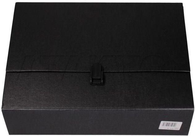 Teczka z rączką Delfin Maxi wykonana ze sztywnej tektury oklejonej z dwóch stron elegancką okleiną rączka i zamek wykonane z czarnego plastiku szerokość grzbietu: 100mm format: A4 rozmiar zewnętrzny: 33,5 x 26 x 10,5 cm kolor czarny
