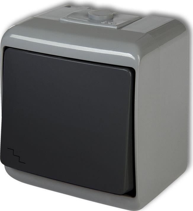 ŁĄCZNIK SCHODOWY NATYNKOWY BRYZGOSZCZELNY IP54 KARLIK JUNIOR, KOLOR POPIELATY/GRAFIT POŁYSK Kolor produktu: popielaty/grafit Oznaczenie handlowe: 30WHE-3 Rodzaj: łączniki oświetleniowe Typ: zintegrowany (bez systemu ramkowego) Rodzaj materiału: tworzywo sztuczne Wykończenie powierzchni: błyszczące …