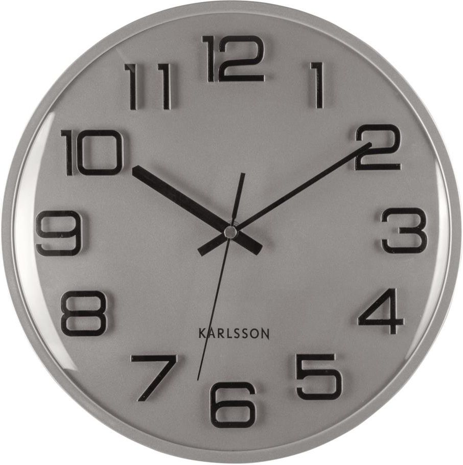 Zegar ścienny w stonowanym srebrnym kolorze w metalowej ramie będzie świetnym dodatkiem do Państwa wnętrza. Tarcza pokryta jest delikatnie wypukłym szkłem ochronnym. Wyposażony jest w mechanizm kwarcowy z baterią AA. Zegar holenderskiej marki Karlsson to wysokiej jakości, pomysłowy i funkcjonalny dodatek designerski, który rozjaśni każde wnętrze. Marka Karlsson jest obecna na rynku od 1999 roku. Obecna w ponad 80 krajach, jest jedną z najpopularniejszych i najlepiej sprzedających się marek designerskich zegarów w swojej klasie na świecie. Karlsson wypuszcza nowe modele kilka razy w roku, które regularnie zadziwiają swoją oryginalnością i nowatorstwem.