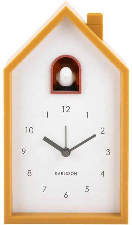 ZEGAR ŚCIENNY ZEGAREK Z KUKUŁKĄ DOMEK 12 x 20 x 6 cm ŻÓŁTY NA BATERIE Producent: Karlsson Nowoczesny zegar z kukułką - urokliwy design łączący nowoczesność z tradycją Urokliwy design: Zegar z kukułką CUCKOO łączy nowoczesność z tradycją, oferując urokliwy, domkowy kształt, który doda charakteru każdemu wnętrzu. Jego minimalistyczny wygląd sprawia, że idealnie wpasuje się w różnorodne aranżacje. Wysoka jakość materiałów: Wykonany z trwałego tworzywa sztucznego ABS, zegar jest odporny na uszkodzenia i łatwy w utrzymaniu czystości. Dzięki solidnej konstrukcji, posłuży przez długie lata. Praktyczne wymiary: Z wymiarami 12 x 20 x 6 cm, zegar jest kompaktowy i łatwy do umieszczenia na półce, biurku czy stoliku nocnym. Nie zajmuje dużo miejsca, a jednocześnie przyciąga wzrok. Łatwe zasilanie: Zegar działa na baterie (3x AAA), co zapewnia wygodę użytkowania bez konieczności podłączania do gniazdka. Baterie nie są dołączone, co pozwala na wybór własnych, wysokiej jakości akumulatorów. Funkcjonalność i estetyka: Zegar posiada czytelny, analogowy cyferblat z wyraźnymi cyframi, co ułatwia odczyt czasu. Dodatkowo, mały figurka w oknie nawiązuje do tradycyjnych zegarów kukułkowych, dodając mu wyjątkowego uroku. kolor: żółty Kolor dominujący: żółty Materiał dominujący: tworzywo sztuczne długość (cm): 12 Wysokość (cm): 20 głębokość (cm): 6 Sposób zapakowania: nie wymaga montażu Producent: Karlsson Zasilanie: bateryjne Baterie: brak w zestawie Typ baterii: 3x AAA Numer katalogowy: 95396
