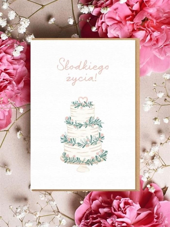 Karnet Ślub - Słodkiego życia Rok wydania: - Rodzaj okładki: Miękka Autor: Stan: Nowa ISBN: 5905159717470 Wymiar: - Nr wydania: - Seria: - Ilość stron: - Waga: 0.5 kg Indeks: ate-549501 Miłość jest największą osłodą życia, dlatego jako prezent z okazji ślubu stawiamy na słodycze zamiast kwiatów! No chyba że te o słodkim zapachu Kartka ślubna SŁODKIEGO ŻYCIA! to wyjątkowy pomysł na prezent dla nowożeńców! Ta oryginalna kartka okolicznościowa z motywem tortu weselnego idealnie sprawdzi się w duecie ze słodkim podarunkiem. Taki prezent ślubny z pewnością doceni każdy zakochany łasuch. Kartka ślubna SŁODKIEGO ŻYCIA! została stworzona od A do Ż w Polsce z miłości do piękna polszczyzny. Podaruj ją najsłodszej parze, jaką znasz! Niech już zawsze karmi się swoją miłością. Kartka ślubna SŁODKIEGO ŻYCIA! Wymiary kartki (po złożeniu): 12 cm x 17 cm Gramatura papieru: 250 g/m2 W zestawie elegancka koperta z eko kraftu Wymiary koperty: 12,5 cm x 17,5 cm Gramatura koperty: 100 g/m2 Zestaw zapakowany w folię Idealna kartka okolicznościowa dla nowożeńców Wyprodukowano w Polsce