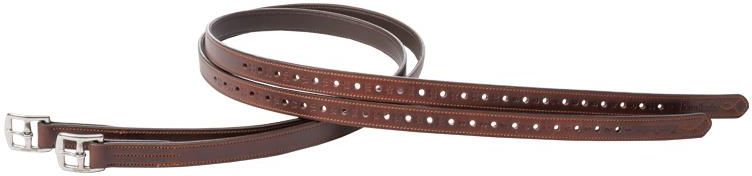 Skóry do strzemion „Soft`n Oil” Strzemiona wykonane są ze skóry olejowanej na górze i miękkiej skóry na dole.Olejowana skóra sprawia, że ​​skóra na strzemiona jest trwalsza, ale mimo to zachowuje swoją elastyczność dzięki miękkiej skórze.Wnętrze strzemion wykonano z nylonu, co zapewnia im wyjątkową stabilność.Zakrzywiona klamra pozwala na wygodniejsze dopasowanie, a na końcu paska znajduje się subtelny ozdobny haft. Kolor: czarny, brązowy, koniakowy Długość: 120, 130, 140, 150, 160 cm Szerokość: 2,5cm Rozstaw otworów: 2 cm Okucia: srebrne UWAGA: Ze względu na unikalny charakter skóry, pozostałości oleju mogą przenosić się na inne powierzchnie. Należy unikać bezpośredniego oraz długotrwałego kontaktu z jasnymi tkaninami, przepuszczalnymi powierzchniami i inną skórą, które mogłyby przypadkowo wchłonąć olej.