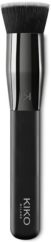 Płasko ścięty okrągły pędzel do nakładania kosmetyków w płynie lub w piance, takich jak podkłady, róże do policzków i rozświetlacze. Duża gęstość włosia i odpowiednia długość włókien umożliwiają łatwe i szybkie nakładanie, gwarantując idealne stopniowanie poziomu krycia. Syntetyczne włókna zapewniają elastyczność, wytrzymałość i wysoką wydajność podczas aplikacji. Wysokogatunkowe włosie jest miękkie i gładkie. Matowoczarny uchwyt zapewnia elegancki, nowoczesny i profesjonalny wygląd, zaś stalowoszara skuwka z wygrawerowanym logo KK dodatkowo podkreśla wyjątkowy charakter pędzla. Ergonomiczny, delikatnie wyoblony kształt uchwytu ułatwia trzymanie i daje doskonałą kontrolę podczas nakładania produktu. Efekty: Wyjątkowy kształt pędzla umożliwia nałożenie optymalnej ilości kosmetyków w kremie lub w piance. Włosie precyzyjnie dopasowuje się do kształtu twarzy i zapewnia idealne stopniowanie poziomu krycia. Sposób użycia: Nabierz pędzlem odrobinę podkładu i nałóż go na twarz, wykonując koliste ruchy od środka twarzy w kierunku zewnętrznym, zaczynając od czoła i kończąc na szyi. Pielęgnacja pędzla: Oczyść pędzel przy użyciu preparatu Brush Cleanser KIKO i pozostaw do wyschnięcia w pozycji poziomej.