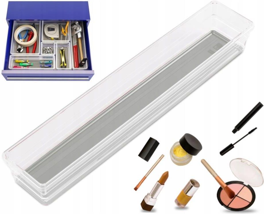 Praktyczny organizer do szuflady doskonale sprawdzi się podczas porządkowania długich łopatek, noży oraz drewnianych łyżek w szufladzie, a także poradzi sobie z bałaganem na biurku, półce oraz w każdym innym pomieszczeniu. Posłuży także do przechowywania linijek, mazaków, kredek oraz innych artykułów biurowych. Pojemniki posiadają dodatkową antypoślizgową powłokę, która niweluje możliwość przesuwania się organizerów podczas zamykania szafek. Wykonane są z wysokiej jakości tworzywa, co gwarantuje ich trwałość i umożliwia mycie produktu przy pomocy detergentów bez obawy o jego uszkodzenie. Gładka powierzchnia pojemników jest prosta w utrzymaniu czystości. Organizery Sistemo wyróżniają się prostotą formy w połączeniu z funkcjonalnością. Dostępne są również w inne rozmiary, które utworzą wspólną kompozycję. Specyfikacja: Długość: 37,5 cm Szerokość: 7,5 cm Wysokość: 5 cm Kolor: Szary/przezroczysty Materiał wykonania: Tworzywo sztuczne Producent: KIS