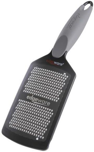 Bardzo drobna tarka nowej generacji, z którego pomocą stracie dużej ilości warzyw to czysta przyjemność. Ostrze pokryte zostało warstwą non-stick, przez co tarte produkty nie przylegają do ostrza, ułatwiając czyszczenie. Bardzo drobne nożyki w opatentowanym kształcie litery V zapewniają niezwykle wydajne efekty ścierania twardego sera, skórki z cytrusów, cebuli, czosnku, imbiru, marchwi oraz czekolady. Ostrza ze stali nierdzewnej poprzez wypalanie kwasem, zyskują niezwykłą ostrość na dłuższy czas. Tarka ma bardzo poręczny kształt, jej miękki uchwyt oraz antypoślizgowa podstawa zapewniają pełną kontrolę podczas pracy. Do tarki dołączony jest praktyczna akrylowa osłona, zapewniająca bezpieczne przechowywanie. Możliwość mycia w górnym koszu zmywarki. Wymiary całkowite: długość - 31 cm Wymiary ostrza: długość - 12 cm Materiał: stal nierdzewna
