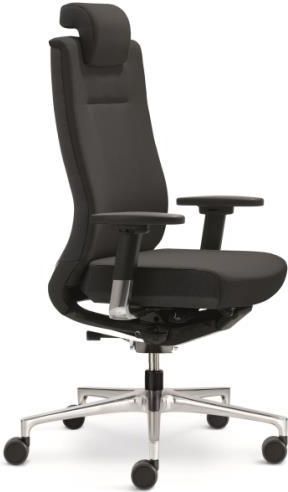 Funkcja - Nadaje się do masy ciała do 150 kg- Mechanizm synchronizowany punktowo- Z progresywnym przeciwciśnieniem- Stosunek nachylenia siedziska do oparcia 1:4- Kąt pochylenia oparcia 28° Regulacja ciężaru ciała - 45-125 kg- Opatentowana szybka regulacja w 12 pozycjach, o max. 6,6 kg na pozycję- Całkowity przesuw zaledwie 70°, innymi słowy w ramach jednego ruchu ręki Zsynchronizowane blokowanie - kąt obrotu można wybrać indywidualnie, wybierając jedną z 3 pozycji (0° / 16° / 28°)- Kąt otwarcia oparcia siedziska 92° Regulacja wysokości siedziska - 41-52 cm- Funkcja bezpiecznego podnoszenia gazowego z mechaniczną sprężyną głębokościową Regulacja głębokości siedziska - Głębokość siedziska 40-48 cm, siedzisko przesuwne można regulować o 8 cm w kierunku przodu- Przyjazne dla użytkownika elementy sterujące, łatwe w obsłudze- Podpórki siedziska i podłokietników są od siebie niezależne Siedzisko - ergonomiczne zagłębienie w siedzisku zapewniające optymalny rozkład ciśnienia- Gęstość pianki 55 kg/m3- Siedzisko ze strefą twardą/miękką składającą się z rdzenia ze sprężynami kieszeniowymi z pianką wiskozową i polarem jagnięcymoptymalna temperatura wilgoci w siedzisku Oparcie - Oparcie w całości tapicerowane z poduszką z pianki PU o grubości 35 mm, bez freonu- Gęstość pianki 55 kg/m3 - Przód ma centralny szew z lamówką Podpórka pod szyję - Podpórka pod szyję z pokryciem z tkaniny, ze skóry ze skórzanym pokrowcem - Regulacja wysokości w zakresie 11 cm Podłokietniki - Podłokietniki 4F polerowane z nakładką- Regulacja wysokości i głębokości oraz dopasowanie do każdej strony- Możliwość obrotu w lewo/prawo o 30° Kółka - Podwójne, twarde kółka z hamulcem zależnym od obciążenia- PP czarny, Ø 65 mm, do dywanów Normy / Certyfikaty - Dyrektywa UE 90 / 270 EEC dotycząca urządzeń ekranowych / DIN EN ISO 9241- Certyfikat Greenguard Gwarancja - 2 lata