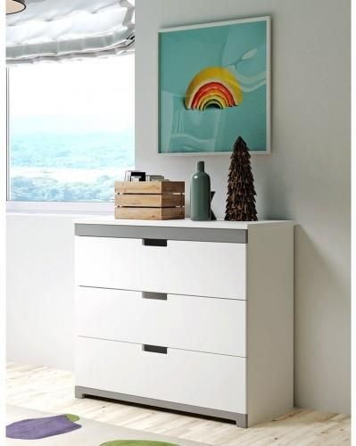 Kolekcja mebli TOMI gwarantuje bezpieczeństwo i ponadczasowy design w pokojach dziecięcych i młodzieżowych. WŁAŚCIWOŚCI KOMODY: kolor: biel+szary pojemna i funkcjonalna - posiada 3 pojemne szuflady szuflady montowane na prowadnicach kulkowych, z pełnym wysuwem funkcja cichego domyku najwyższa jakości wykonania - spełniająca europejskie normy oraz posiadająca niezbędne atesty stanowi idealne uzupełnienie kolekcji Tomi MATERIAŁ płyta meblowa, lakierowane frotny MONTAŻ meble dostarczane są w paczkach z instrukcją do samodzielnego montażu. WYMIARY wysokość : 90,5 szerokość : 100cm głębokość : 45 cm