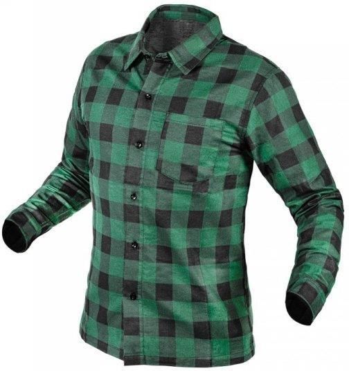 Koszula flanelowa, zielona marki NEO to miękka i wygodna koszula na której drukowany jest wzór w zielono-czarną kratę. To niezwykle trwały sposób nanoszenia kolorów na 100% bawełnę.