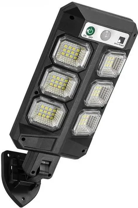 Sterowana pilotem, lampa latarnia uliczna ogrodowa o mocy 10w i 6 modułach SMD(72led), z czujnikiem ruchu i zmierzchu oraz pilotem zdalnego sterowania zasilanie akumulatorowe ładowanie słoneczne ip 65 kolor czarny. Lampa solarna ścienna led z 6 modułami led SMD z 3 trybami pracy, posiada pilota zdalnego sterowania oraz czujnik ruchu i zmierzchu, IP65 jest wodoodporna. Lampa słoneczna idealna przed dom, do oświetlenia drzwi wejściowych, furtki, ściany domu itp. Moduły led COB mają znacznie lepszą wydajność w porównaniu do tradycyjnych diod. Cechy Wydajna lampa solarna z diodami LED umieszczonymi w 6 modułach SMD z wbudowanym panelem słonecznym to niewyczerpane źródło darmowej energii dla Twojego domu. Zamontuj ją w dowolnym miejscu. Zredukuj koszty oświetlenia zewnętrznego, stawiając przy tym na ekologię - brak konieczności wymiany baterii. Dzięki wbudowanemu czujnikowi ruchu i zmierzchu będzie zapalać się wyłącznie w nocy i tylko wtedy, gdy lampa wykryje wokół siebie ruch. Specyfikacja produktu Typ: 6 mod SMD 12LED, Panel słoneczny: 3.69W, moduły: 6 sztuk po 12 led, Kąt ruchu: 270 stopni, Akumulator litowo-jonowy: 1500mAh, Odległość ruchu: 5M. Wymiary latarni: 165 x 45 x 437 mm Pilot posiada standardowe funcie dla tego typu urządzeń czyli on/off i wybór trybu pracy. Pilot nie jest dedykowany do konkretnej lampy, więc można obsługiwać kilkareflektorów jednym pilotem. ON - Włącz OFF - Wyłącz mode 1: lampa zapali się pełnym światłem po wykryciu ruch i zgaśnie po 25 sekundach. mode 2: latarnia świeci 10% mocy, po wykryciu ruchu zapali się na 100% i powróci do 10% po 25 sekundach. mode 3: lampa świeci na 30% mocy od zmierzchu do świtu lub wyczerpania baterii. Tryby pracy lampy - działają po zmroku Tryb 1: 100% mocy, gdy wykryje ruch i wyłączy się po około 20 sekundach Tryb 2: 100% mocy, gdy wykryje ruch i 10% mocy po około 20 sekundach Tryb 3: to 20% przez 5 godzin. Lampa jest łatwa w obsłudze i instalacji. Zestaw zawiera lampę ścienną, z wbudowaną baterią, czujnikiem ruchu i panelem słonecznym, pilot zdalnego sterowania, uchwyt do mocowania na ścianie, kołeczki rozporowe do mocowania lampy i śrubki do uchwytu.