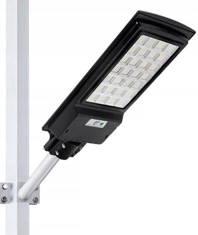 Latarnia uliczna solarna 560 LED SMD 850W IP65, posiada wbudowany czujnik ruchu i zmierzchu, W zestawie panel słoneczny, pilot sterujący i mocowanie do słupka lub ściany fi50. Lampa ma kilka trybów pracy: timer, włączenie na stałe i automatyczny - po wykryciu ruchu zapala światło. Wszystkie rodzaje pracy są powtarzalne i działają po zmroku.Solarna latarnia uliczna dużej mocy 560 LED SMD 850W IP65Używając energii słonecznej, nie płacisz za żadne pieniądze ponownie. Bezprzewodowa instalacja, możesz zainstalować lampę dogodnym miejscu. Latarnia posiada czujnik ruchu, który po wykryciu ruchu aktywuje lampę. Można też ustawić na czas od 2, 3, 4, 5 i 8 do godzin lub zapalić na stałe - zgaśnie o świcie lub po wyczerpaniu baterii. Każdy z wybranych trybów działa cyklicznie po zmroku aż do wyłączenia o świcie i aktywuje się ponownie po zmierzchu. Nie ma potrzeby codziennej aktywacji lampy pilotem. Detekcja ruchu ludzkiego + kontrola światła: najnowsze latarnie mają wykrywanie radaru i kontrolę światła słonecznego, lampa solarna ma wbudowany czujnik ruchu i kontrolę zmierzchu, aby automatycznie regulować światło (włączyć o zmierzchu, wyłączyć o świcie), po wykryciu ruchu, Światło latarni LED zmienia się na tryb jasności 100% w ciągu 2 sekund. Jeśli ktoś opuści obszar wykrywania, powróci do trybu oszczędzania energii 30%. Ten model latarni solarnej posiada możliwość demontażu panela słonecznego, wymiany baterii lub dokonania innych napraw. Nie jest to normą w tego typu konstrukcjach.Pilot posiada standardowe funcie dla tego typu urządzeń czyli on/off, timer i regulację jasności lampy. Lampa potwierdza przyjęcie polecenia mignięciem. Pilot nie jest dedykowany do konkretnej lampy, więc można kilka latarni obsługiwać jednym pilotem. ON - Włącz OFF - Wyłącz 1 - Timer 2h Wyłącza latarnie po 2 godzinach ciągłego świecenia 2 - Timer 4h Wyłącza latarnię po 4 godzinach ciągłego świecenia 3 - Timer 6h Wyłącza latarnię po 6 godzinach ciągłego świecenia 4 - Wymuszenie włączania/ Wyłączania 5 - Radar induction Przycisk włączający czujnik ruchu i funkcję świecenia w 100% kiedy ktoś nadchodzi 6- Always Przycisk aktywujący tryb "ciągłej pracy" Latarnia solarna jest mocowana do rury o średnicy fi 50 (rura do mocowania w komplecie)Specyfikacja: Panel solarny: 6V/18W Akumulator: 3,7V 12000mAh obszar: do 200m2 Kąt wykrywania: 120 stopni Zasięg wykrywania:8-12 metrów Zalecana wysokość montażu: 3-8M Czas ładowania: 5-6h - zależy od nasłonecznienia, Czas świecenia: 5-10h - zależny od ilości aktywacji i trybu pracy. Czas pracy: do 3 dni w trybie wykrywania ruchu, latarnia o mocy:850W, Diody led: 560LED, Lumen: Max 8500LM, wymiary lampy: 630mm * 70mm * 250mm, Rozmiar panelu słonecznego: 250*590mm, funkcja Auto on/off, czujnik ruchu typu PIR. Zastosowanie: ogród, garaż uliczny, ścieżka, taras przy basenie, podwórko Uwaga: bateria pilota zdalnego sterowania powinna być alkaliczna. Cechy: Możliwość demontażu panela słonecznego w celu wymiany baterii lub wykonania innych prac serwisowych. ładowanie akumulatora z panelu solarnego, łatwy montaż, brak przyłącza elektrycznego, diody led zasilane energią odnawialną, bateria wysokiej klasy o dużej pojemności, korpus z tworzywa sztucznego ABS zabezpieczony przed opadami deszczu. Zestaw zawiera: Latarnię solarną 850w z wbudowanym akumulatorem i panelem słonecznym, Pilota zdalnego sterowania, Elementy montażowe: mocowanie typu rura fi 50mm baterie do pilota 2*AAA.