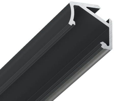 Listwa Led narożna kątowa czarna PK-08 100 cm Czarny aluminiowy profil ledowy dwu kątowy 30° na 60° do montażu w narożniku w meblach, w narożniku w zabudowie i we wnękach do Led pod kątem. Korytko kątowe Led aluminiowe PK-08 do oświetlenia pod kątem 30° lub do oświetlenia pod kątem 30°, które można stosować w narożniku, oraz może służyć jako kątowy podkład do mocowania pasków Led w sufitach, w wnękach z płyt GK. Dzięki swoim właściwościom i użyciu profilu bez klosza, sprawdzi się jako tani radiator do odprowadzania ciepła z mocnej taśmy led. Zalety profilu aluminiowego LED: możliwość ustawienia dwóch kątów świecenia 30 lub 60 stopni, możliwość zamontowania oświetlenia Led w narożnikach, wysokiej jakości aluminium wyprodukowane w Polsce, trwały i niezawodny montaż taśmy LED do powierzchni, odprowadzanie ciepła z taśmy LED, co wydłuża żywotność oświetlenia, Zastosowanie dla profilu kątowego LED: dwu kątowa listwa aluminiowa to wklejania pasków LED, listwa oświetleniowa LEDowa montowana w narożniku szafek, listwa świecąca z ledami pod kątem, narożnikowa listwa do LED do zabudowy, listwa LED do oświetlenia wnęki w suficie lub ścianie pod kątem, Podstawowe parametry profilu PK-08: szerokość zewnętrzna: 17mm, wysokość zewnętrzna: 16.5 mm, szerokość wewnętrzna montażowa pod taśmę LED: 13 mm, wysokość wewnętrzna montażowa pod taśmę LED: 7.2 mm, długość całkowita: 100 cm, materiał: aluminium anodowane, kolor: czarny Dodatkowe akcesoria do kupienia osobno: klosze model KPB-13, zaślepki boczne, uchwyty montażowe do profilu.