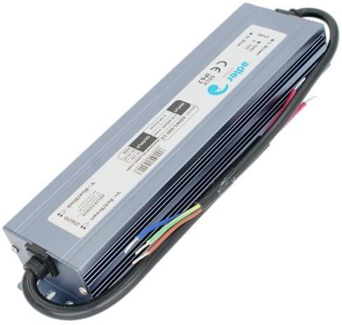 Hermetyczny zasilacz serii ADWS do LED o mocy 200 Watt i napięciu wyjściowym 24V DC. Zasilacz LED z serii ADWS to model z rodziny Ultra Flat Premium, wyróżniający się wodoodpornością oraz klasą szczelności IP67. Dodatkowo, zasilacz ten oferuje napięcie wyjściowe 24V, co czyni go idealnym wyborem dla różnorodnych instalacji oświetlenia LED. Zasilacz przeznaczony do montażu w wilgotnych miejscach, takich jak łazienki, kuchnie, kotłownie czy garaże, a także do użytku na zewnątrz budynków, ten zasilacz doskonale radzi sobie w trudnych warunkach. Jego solidna, metalowa obudowa gwarantuje niezawodną ochronę przed wilgocią i przypadkowymi zachlapaniami wodą. Zasilacz ADWS Adler Power w obudowie hermetycznej sprawdzi się w najbardziej wymagających instalacjach oświetleniowych Led. Przez długi okres użytkowania zachowuje swoje parametry oraz wydłuża żywotność instalacji oświetleniowej Led. Zasilacz dzięki szczelnej obudowie IP67, charakteryzuje się cichą pracą, dzięki czemu przy współpracy ze ściemniaczami Led PWM nie wydaje dźwięków przy ściemnianiu (cewka i kondensatory nie wpadają w drgania). Zasilacz do taśmy LED powinien mieć to samo napięcie (V) co taśma oraz około 20% zapasu mocy (W), aby nie pracował na maksymalnym obciążeniu (większa awaryjność i krótsza żywotność instalacji). Nie wiesz, jak dobrać zasilacz do LED? Przeczytasz o tym tu: zasilacze do LED. Podstawowe zalety zasilacza serii ADWS: wodoodporna hermetyczna obudowa IP67, trwała metalowa obudowa odporna na uszkodzenia mechaniczne, wysoka jakość stabilizacji napięcia stałego DC 24V, wysoka niezawodność oraz wysoka sprawność użytkowa zasilacza Led, cicha praca zasilacza przy współpracy ze ściemniaczami Led PWM, Podstawowe zastosowanie zasilacza ADWS: do zasilania oświetlenia Led w łazience, do oświetlania ledowego na zewnątrz, zasilanie pasków led w listwie oświetleniowej, zasilanie taśm Led w szafach i meblach, do zasilania ledów w pomieszczeniach o dużej wilgotności, Podstawowe parametry zasilacza ADWS: napięcie znamionowe na wyjściu: DC24V, moc znamionowa: 200 Watt, znamionowe obciążenie prądowe: 8.33A, sprawność zasilacza: ⩾88%, maksymalne bezpieczne obciążenie dla zasilacza: 180 Watt, napięcie zasilania na wejściu: AC 170V-264V, częstotliwość napięcia zasilania: 47Hz-63Hz, zabezpieczenie przeciążeniowe: tak, zabezpieczenie zwarciowe: tak, zabezpieczenie termiczne: tak, klasa ochronności: II, klasa szczelności: IP67, chłodzenie zasilacza: pasywne, obudowa zasilacza: hermetyczna metalowa, długość przewodów przyłączeniowych: 200 mm wymiary zewnętrzne zasilacza (dł. x szer. x wys.): 238mm x 57mm x 32mm