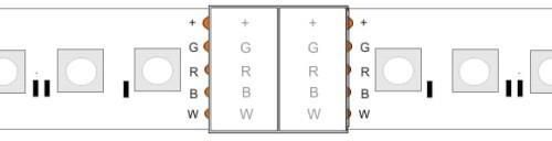 Złączka dwustronna do kolorowej taśmy LED RGBW na diodach SMD z podkładem PCB 10mm. Model RGBW T-T 10mm to dwustronna złączka do połączenia ze sobą dwóch docinków taśmy Led RGBW w jeden odcinek. Używając złączki Led RGBW T-T 10mm można połączyć ze sobą dwa odcinki kolorowej taśmy Led RGBW w jedną długość odcinka. Złączka służy do zapinania na taśmach Led RGBW pięcio-pinowych o szerokości podkładu PCB 10mm. Zamiast stosowania złączek ze względu na lepszą trwałość połączeń, oraz lepsze i stabilne przejście napięcia zalecamy lutowania bezpośrednio przewodów do taśmy, lub łączenia ze sobą odcinków za pomocą bezpośrednich lutowań. Uwaga złączka nie pasuje rozstawem pinów do taśm LED COB RGBW.