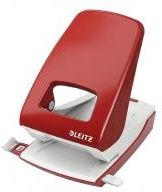 Duży dziurkacz marki LEITZ. Podstawa wykonana z metalu i wygodny uchwyt z blokadą.Pojemnik na odpady na zawiasach.Dziurkuje naraz nawet do 40 kartek.Posiada wyraźne oznaczenia formatu i wytrzymałą prowadnicę, która zapewnia idealne wyrównanie papieru.Średnica dziurek wynosi 5,5 mm, rozstaw dziurek to 80 mm.Dziurkacz o wymiarach137x135x156 mm weleganckim czerwonym kolorze.