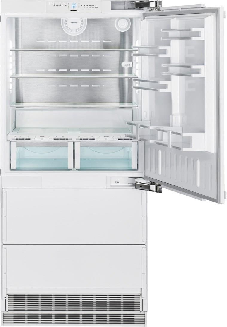 ECBN 6156 PremiumPlus BioFresh NoFrost Chłodziarko-zamrażarka do zintegrowanej zabudowy z technologiami BioFresh i NoFrost Kup i zarejestruj się klikając w link poniżej, a otrzymasz GwarancjęPlus! Przedłużysz Twoją standardową 2-letnią gwarancję, o kolejne 3 lata. Wypełnij formularz online. Klasa efektywności energetycznej A+ Komora 0° BioFresh Technologia chłodzenia NoFrost Wysokość wnęki 203 cm Pojemność użytkowa całkowita 471 l Rodzaj zabudowy do zabudowy Montaż drzwi Drzwi wspólne Możliwość pracy w sieci (obsługa SmartDevice) Ogólne informacje o produkcie Grupa produktów Chłodziarko-zamrażarki do zabudowy zintegrowanej z systemem BioFresh i NoFrost GTIN 9005382233559 Moc wyjściowa i zużycie energii Klasa efektywności energetycznej A+ Zużycie energii w ciągu 24 h 1,121 kWh / 24h Zużycie energii w ciągu roku 410 kWh/a Klasa klimatyczna SN-T Poziom szumu 42 dB Pojemność użytkowa całkowita 471 l Chłodziarka 357 l z tego BioFresh 68 l Zamrażarka 114 l Pojemność całkowita brutto 585 l Chłodziarka 402 l z tego BioFresh 73 l Zamrażarka 183 l Napięcie 220-240 V ~ Częstotliwość 50 Hz Moc znamionowa 1,5 A 189,4 W Wymiary i masa Wysokość wnęki 203 cm Wymiary z opakowaniem WSG 2.125,0 / 966,0 / 750,0 mm Wymiary wnęki wysokość/szerokość/głębokość 203,2 - 207,2 / 91,5 / 61,0 cm Ciężar (bez opakowania) 163,00 kg Ciężar (z opakowaniem) 175,00 kg Panel sterowania i funkcje Sterowanie Cyfrowy wskaźnik temperatury z MagicEye Obsługa Touch-Elektronic Regulowane obiegi chłodnicze 2 Strefy temperatur 3 Wskaźnik temperatury Komora chłodnicza i zamrażania Awaria: Sygnał ostrzegawczy optyczna i akustyczna Ekran FrostControl ✔ Drzwi otwarte: Sygnał ostrzegawczy komora chłodnicza akustyczny Drzwi otwarte: Sygnał ostrzegawczy komora zamrażania akustyczny Zabezpieczenia przed dziećmi ✔ Funkcja SuperCool ✔ Funkcja SuperFrost z regulacją w zależności od ilości Możliwość pracy w sieci (obsługa SmartDevice) — Komora chłodzenia Rozmrażanie automatyczna Chłodzenie powietrzem obiegowym ✔ Oświetlenie Kolumna świetlna LED i oświetlenie sufitowe LED Liczba półek w chłodziarce 4 z tego z regulacją wysokości 3 z tego dzielone 0 w tym do swobodnego wykorzystania jako półka na butelki 1 Materiał półek, komora chłodnicza Szkło Półki na butelki — Półka na butelki 0 Liczba uchwytów na puszki 4 Podstawki na jajka ✔ Komora 0° * BioFresh Liczba schowków BioFresh 2 Wysuwane na teleskopowych szynach ✔ DrySafe 0 z tego HydroSafe 2 z oświetleniem Oświetlenie LED Komora mrożenia NoFrost ✔ Oznaczenie gwiazdkowe 4 Technologia chłodzenia NoFrost Rozmrażanie automatyczna Czas przechowywania w przypadku awarii 40 h Zdolność zamrażania w ciągu 24 godz. 11 kg Szuflady w zamrażarce 2 z tego na szynach teleskopowych 2 Materiał półek, komora zamrażania — Oświetlenie Oświetlenie LED IceMaker ✔ Ustawienia i instalacja Montaż drzwi Drzwi wspólne Kierunek otwierania drzwi prawe na stałe Kąt otwarcia drzwi 115° Cokół Vario ✔ Nóżki z regulacją wysokości 4 Wentylacja Wentylacja w cokole Rama dekoracyjna z możliwością rozbudowy Komora BioFresh W urządzeniach z technologią BioFresh żywność zachowuje cenne witaminy, delikatny aromat i apetyczny wygląd znacznie dłużej niż w tradycyjnej chłodziarce. Zaawansowana technologia umożliwia utrzymanie temperatury na poziomie nieznacznie przekraczającym 0°C. Technologia DuoCooling W chłodziarko-zamrażarkach wyposażonych w technologię DuoCooling z dwoma niezależnymi obiegami chłodniczymi temperaturę w komorach chłodzenia i mrożenia można ustawiać indywidualnie. Pomiędzy komorami nie dochodzi do wymiany powietrza, co zapobiega przenoszeniu się zapachów i wysychaniu produktów. Funkcja SuperFrost Za sprawą funkcji SuperFrost w urządzeniu wytwarzają się rezerwy zimna, dzięki czemu świeżo włożone produkty można szybko zamrozić, co pozwala zachować ich cenne witaminy. Zmiana z temperatury -32°C na normalny tryb mrożenia następuje po upływie określonego czasu lub zależnie od ilości włożonych produktów, co pomaga obniżyć zużycie energii. Technologia NoFrost W urządzeniach Liebherr z technologią NoFrost wentylator szybko mrozi żywność bez generowania szronu. Dzięki temu można ją bezpiecznie przechowywać przez długi czas. Za sprawą technologii NoFrost w komorze zamrażarki nie osadza się lód, dzięki czemu jest w niej więcej dostępnej przestrzeni. Zabezpieczenie przed dziećmi Zabezpieczenie przed dziećmi zapobiega niezamierzonemu wyłączeniu urządzenia. Gdy jest aktywne, na wyświetlaczu MagicEye pojawia się odpowiedni symbol. Funkcja SuperCool Za sprawą funkcji SuperCool w urządzeniu wytwarzają się rezerwy zimna, dzięki czemu świeżo włożone produkty można szybko schłodzić. Zmiana z temperatury +2°C na normalny tryb chłodzenia następuje po upływie określonego czasu lub zależnie od ilości włożonych produktów, co pomaga obniżyć zużycie energii.