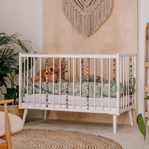 Łóżeczko drewniane sensoryczne pod materac 120x60 WŁAŚCIWOŚCI oryginalny wygląd - zostało zaprojektowanie i wykonane ręcznie posiada 3-poziomową regulację stelażu, dzięki której z łatwością dostosujesz łóżeczko do wzrostu i etapu rozwoju dziecka wzbogacone o zestawy ślicznych drewnianych i silikonowych kuleczek sensorycznych, umieszczonych na szczebelkach, które wspierają rozwój dziecka (m.in. stymulują zmysł dotyku oraz pozwalają aktywizować receptory czuciowe) solidne i bezpieczne - pomalowane ekologicznymi, bezzapachowymi i hipoalergicznymi farbami wodnymi, które są całkowicie bezpieczne dla dzieci (norma EN 71-3) wszystkie krawędzie zostały zaokrąglone i dokładnie wypolerowane tak, aby powierzchnia łóżeczka była idealnie gładka i przyjemna w dotyku dostępne w trzech kolorach MATERIAŁ 100% z naturalnego drewna stelaż łóżeczka zbudowany jest z 10 sprężystych (giętych) listew sosnowych, połączonych ze sobą taśmą WYMIARY wysokość 85 cm / szerokość 65 m / głębokość 125 cm. Spód: 120×60 cm 7 szczebelków z kulkami silikonowymi i drewnianymi