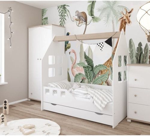 Łóżko HOUSE JUNIOR II charakteryzuje się skandynawskim designem i solidnym wykonaniem. Zostało wykonane z lakierowanej płyty MDF oraz płyty wiórowej. Solidna konstrukcja gwarantuje bezpieczeństwo i komfort użytkowania. WŁAŚCIWOŚCI: oryginalne łóżko w kształcie domku dach domku w kolorze dąb królewski nośność łóżka - 110kg bezpieczne, zaokrąglone krawędzie barierka dołączona do zestawu GRATIS - barierka NIE JEST OBUSTRONNA * (strona barierki tak jak na zdjęciu) możliwość zakupu łóżka bez szuflady lub z szufladą ( 4 rodzaje) Poza szufladą pojedynczą dostępne są poniższe wersje szuflad: 3 szuflady: szuflada w pojedyncza w kolorze dąb królewski: 2 szuflady: szuflada biała z funkcją spania (opcja dostępna tylko dla łóżek 180x80): MATERIACE: 1. PIANKOWY materac piankowy poliuretanowy o grubości 7 cm [gęstość T25]. zdejmowany pokrowiec PRODUKT POLSKI ! Posiada atest Oko-Tex standard 100 2. PIANKA-KOKOS 2-stronny materac o grubości 7,5 cm wypełniony naturalnym włóknem kokosowym oraz pianką poliuretanową posiada właściwości termiczne, zapewnia właściwą cyrkulacje powietrza zdejmowany pokrowiec PRODUKT POLSKI ! Posiada atest Oko-Tex standard 100 3. GRYKA-KOKOS-PIANKA 2-stronny materac o grubości 8,5 cm połączenie włókien kokosowych z łuskami gryki zapewnia stabilne ułożenie dziecka ma właściwości antyalergiczne, antyodleżynowe zdejmowany pokrowiec PRODUKT POLSKI ! Posiada atest Oko-Tex standard 100 4. PIANKOWO-STREFOWY 2-stronny materac o grubości 10 cm wypełnienie ze sprężystej pianki strefowej, wytrzymałej na odkształcenia oraz pianki poliuretanowej jest przewiewny i świetnie odprowadza wilgoć zdejmowany pokrowiec PRODUKT POLSKI ! Posiada atest Oko-Tex standard 100 MATERIAŁ: szczyty oraz front szuflady wykonane z MDF lakierowanego pozostałe elementy z płyty wiórowej laminowanej stelaż : drewno sosnowe (przeważnie od 10 do 14 sztuk desek stelażowych ( sugerowany rozstawpowinien być co 5 cm)) łóżko lakierowane jest atestowanymi lakierami wodnymi Kolorystyka(odcień bieli)poszczególnych materiałów może się nieco różnić. MONTAŻ : meble dostarczane są w paczkach z instrukcją do samodzielnego montażu oraz wszystkimi niezbędnymi okuciami WYMIARY: Wysokość: ok 165cm Grubość barierek i frontów: 18mm Wysokość na jakiej znajduje się stelaż:ok24cm rozstaw deseczek w stelażu ok 5,5-6 cm Wymiary zewnętrzne łóżka w zależności od wymiarów wewnętrznych: Wymiar wew. łóżka 160x80 - 164x89,5cm Wymiar wew. łóżka 180x80 - 184x89,5cm