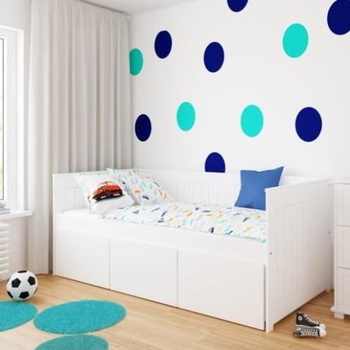 Łóżko STELLA charakteryzuje się oryginalnym designem i solidnym wykonaniem. Zostało wykonane z lakierowanej płyty MDF oraz płyty wiórowej. Solidna konstrukcja gwarantuje bezpieczeństwo i komfort użytkowania. WŁAŚCIWOŚCI: oryginalny design nośność łóżka - 80 kg bezpieczne, zaokrąglone krawędzie trzy pojemnie szuflady na kółkach MATERACE: 1. PIANKOWY materac piankowy poliuretanowy o grubości 10 cm [gęstość T25] twardość H3 zdejmowany pokrowiec PRODUKT POLSKI ! Posiada atest Oko-Tex standard 100 2. PIANKA WYSOKOELASTYCZNA HR SILVER PROTECTION JUNIOR wysokość: ok 13cm, twardość H2 pianka wysokoelastyczna HR, odporniejsza na odkształcanie dwustronny: z jednej strony bez strefowy (przeznaczony dla dzieci od 2 do 12lat), z drugiej strony 7stef dla dzieci starszych (od 12roku życia) zdejmowany pokrowiec - Silver Protection z dodatkiem jonów srebra o właściwościach antybakteryjnych wszycie zamka w systemie babysafe borda z obu stron materaca gęstość pianki 35kg/m3 3. LATEKSOWY wysokość: 12cm, twardość H2 jednolitaj płyta lateksowa, która posiada szereg unikalne ułożonych otworów wentylacyjnych w celu swobodnej cyrkulacji powietrza elastyczny z właściwościami ortopedycznymi tzn. dopasowuje się do kształtu ciała materac dwustronny H2 - średnio-twardy zdejmowany pokrowiec wszycie zamka w systemie babysafe borda z obu stron materaca MATERIAŁ: szczyty oraz front szuflady wykonane z MDF lakierowanego pozostałe elementy z płyty wiórowej laminowanej stelaż : drewno sosnowe (przeważnie od 10 do 14 sztuk desek stelażowych ( sugerowany rozstawpowinien być co 5 cm)) łóżko lakierowane jest atestowanymi lakierami wodnymi Kolorystyka(odcień bieli)poszczególnych materiałów może się nieco różnić. MONTAŻ : meble dostarczane są w paczkach z instrukcją do samodzielnego montażu oraz wszystkimi niezbędnymi okuciami WYMIARY: Wysokość: 84cm Grubość barierek i frontów: 18mm Wysokość na jakiej znajduje się stelaż:ok 42 cm Wymiary zewnętrzne łóżka w zależności od wymiarów wewnętrznych: Wymiar wew. łóżka 200x90 - 209x96 cm