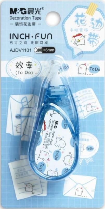 M&G TAŚMA DEKORACYJNA SZLACZKOPIS 6MMX3M Ozdobna taśma do naklejania na wielu powierzchniach Motyw z sympatycznymi duszkami Szerokość taśmy 6 mm Długość taśmy 3 m Doskonale sprawdzi się podczas dekorowania zaproszeń, laurek, notatek czy tworzenia kreatywnych prac plastycznych. Jest niezwykle łatwy w użyciu – działa jak korektor w taśmie. Wystarczy przeciągnąć szlaczkopisem po papierze a pojawi się na nim ciekawy wzór