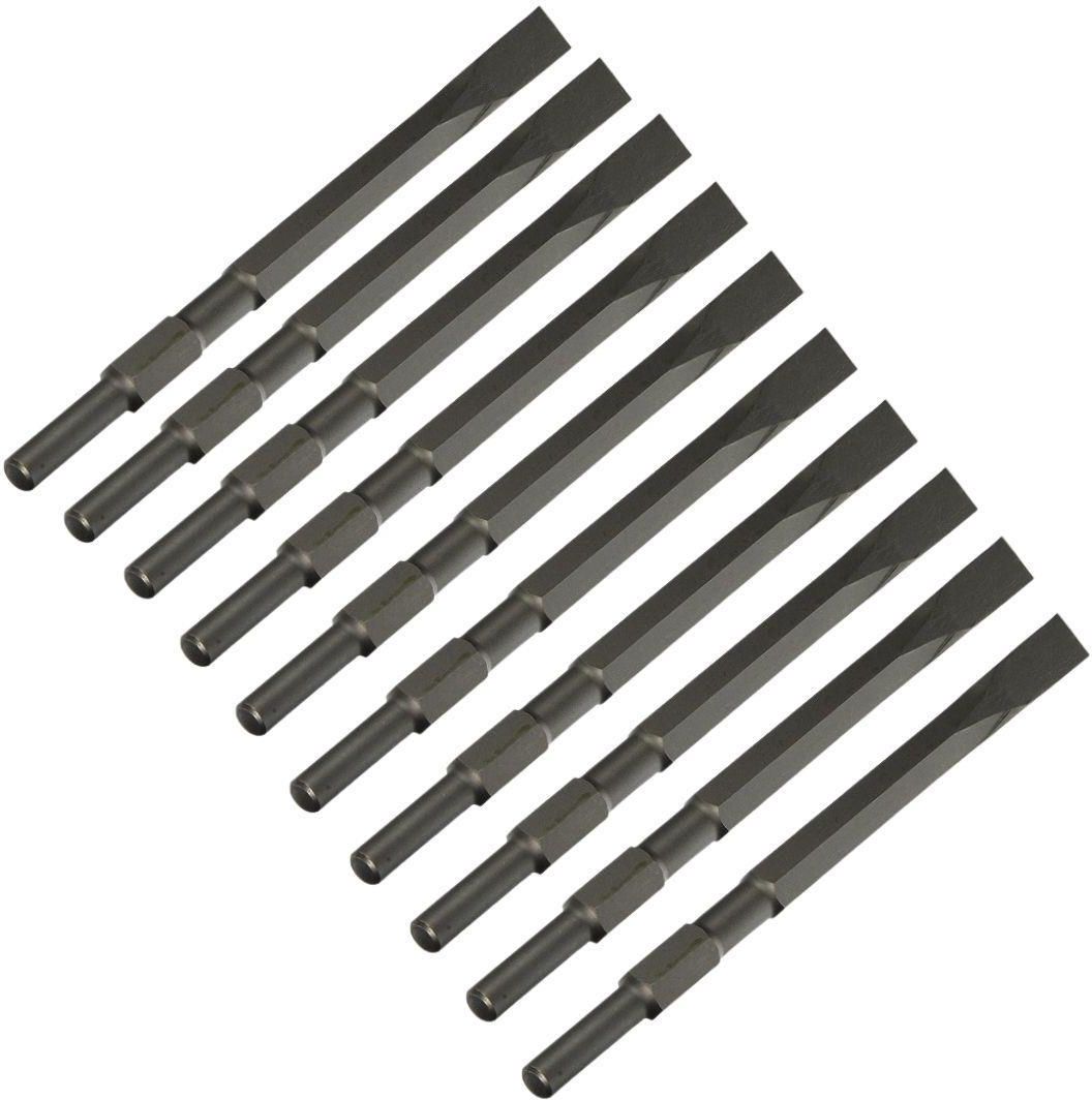 Zestaw dłut płaskich Makita A-80771, sześciokąt 28,6 mm – 10 sztuk Wydajność i trwałość w jednym zestawie Zestaw dłut płaskich Makita A-80771 to profesjonalne narzędzia przeznaczone do wymagających zadań. Dzięki solidnej konstrukcji, wysokiej wytrzymałości i niskiemu poziomowi wibracji dłuta sprawdzą się w każdej pracy z betonu, cegły czy innych twardych materiałów. Najważniejsze cechy produktu Wysoka wytrzymałość: Dzięki precyzyjnie wykonanej konstrukcji dłuta są odporne na zużycie, co zapewnia długą żywotność nawet przy intensywnym użytkowaniu. Niskie wibracje: Zminimalizowane wibracje przekładają się na większy komfort pracy i mniejsze zmęczenie użytkownika. Uniwersalne zastosowanie: Pasują do wszystkich elektronarzędzi (zarówno akumulatorowych, jak i sieciowych) wyposażonych w system mocowania sześciokąt 28,6 mm. Wysoka wydajność: Doskonałe do prac rozbiórkowych, dłutowania oraz kształtowania powierzchni w trudnych warunkach. Specyfikacja techniczna System mocowania: Sześciokąt 28,6 mm Długość całkowita: 280 mm Szerokość dłuta: 17 mm Skład zestawu: 10 sztuk