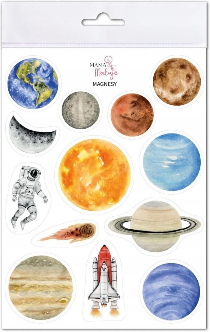 Magnesy Kosmos Mama Maluje ✅ ✔️ Magnesy przedstawiają planety oraz inne kosmiczne ilustracje. Magnesy są elastyczne i miękkie, dzięki czemu już małe dziecko bez problemu poradzi sobie z ich odczepianiem a mimo to dobrze trzymają się różnych powierzchni magnetycznych. Wzory przedstawione na …