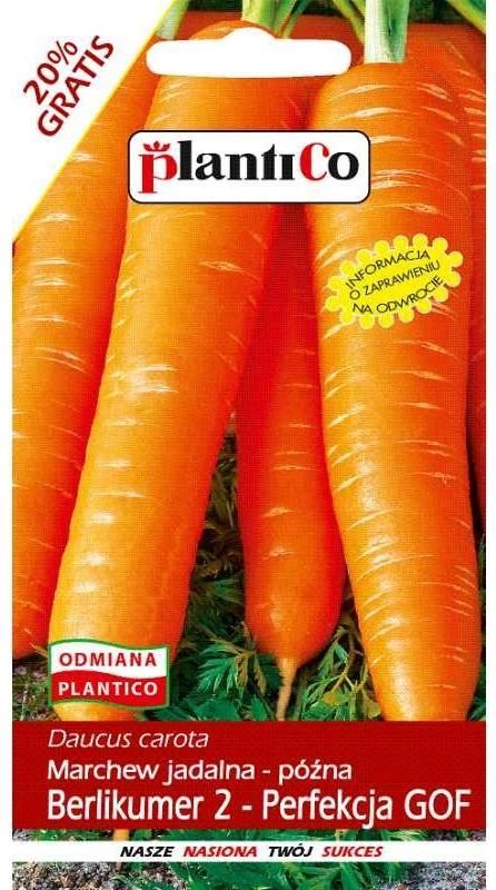 MARCHEW JADALNA BERLIKUMER 2 - PERFEKCJA GOF Nasiona inkrustowane - inkrustacja to uszlachetnianie nasion do wysiewu w celu poprawienia ich jakości. Nasiona Plantico zostały zainkrustowane kompleksowym nawozem donasiennym, który zwiększa odporność na niekorzystne warunki uprawy i dostarcza niezbędnych składników pokarmowych we wczesnej fazie wzrostu rośliny. Odmiana plenna, późna, polecana do uprawy na zbiór jesienny do bezpośredniego spożycia oraz szczególnie przydatna do długiego zimowego przechowywania. Korzenie długie ok. 20 cm, walcowate, intensywnie pomarańczowe. Walec osiowy stanowi około 50 % średnicy korzenia. Miąższ smaczny, z dużą zawartością cukrów. Wyższe plony uzyskuje się w uprawie na redlinach. Gatunek wymaga gleb głęboko uprawionych, przy zbyt gęstych zasiewach wymagana jest przerywka. Masa netto: 6 g Producent: PlantiCo Hodowla i Nasiennictwo Ogrodnicze Zielonki sp. z o.o. Zielonki Parcele, ul. Parkowa 1A 05-082 Stare BabiceDo sprawdzenia