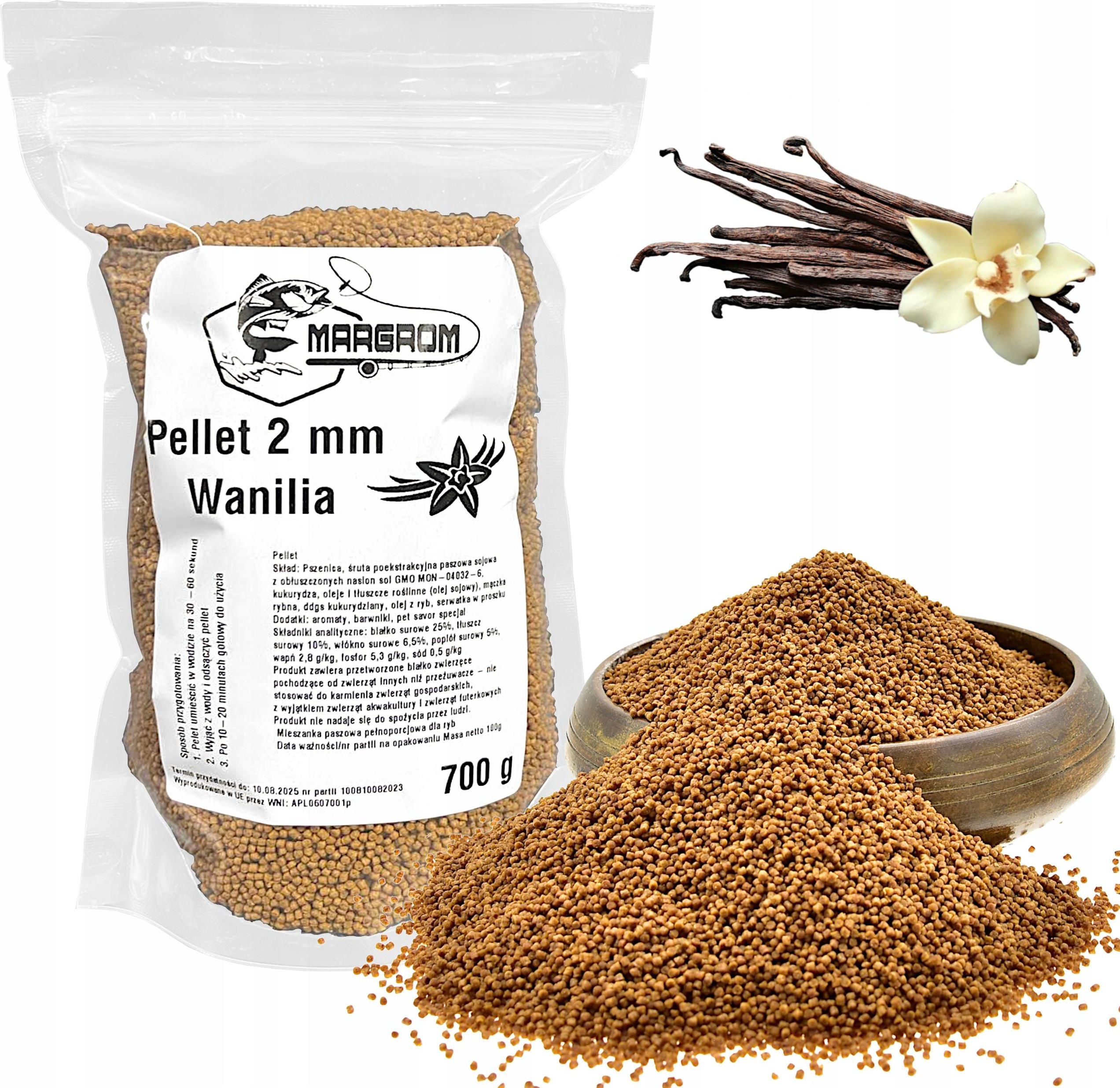 PELLET Zanętowy MARGROM 2mm/700g WANILIA Najwyższa pora na PELLET, który sprosta na prawdę wysoce wygórowanym wymaganiom wędkarzy, którego jakość, aromat, świetna praca w wodzie oraz wysoka skuteczność nie ma sobie równych - przekonajcie się sami!!! Produkowany metodą ekstruzji na najwyższej jakości mączkach rybnych, drobiowych, zbożach, ziarnach roślin oleistych, olejach: roślinnych oraz rybnych, hemoglobinie, wysokobiałkowych produktach roślinnych sprawia, że pellet Carp Method Ground charakteryzuje się bardzo wysoką wartością odżywczą i bardzo wysoką strawnością - a w połączeniu z najwyższej jakości aromatami i przyprawami sprawia, że żadna ryba nie pozostaje bez odzewu. Specyfikacje: Pellet zanętowy Średnica: 2 mm Aromat: WANILIA dedykowany na karpia, płoć Waga netto: 700 g Produkt przeznaczony wyłącznie dla ryb. Pellet to atrakcyjna przynęta do łowienia karpi, leszczy, kleni, karasi i wszelkich innych ryb karpiowatych. Idealna zarówno na wody stojące, jak i płynące. Produkt polski - Made in Poland