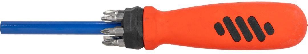 MEGA WKRĘTAK WIELOFUNKCYJNY 10014 MEGA WKRĘTAK WIELOFUNKCYJNY 10014 to niezbędne narzędzie w każdym warsztacie, garażu czy domowym zestawie narzędzi. W kontekście szerokiego zastosowania w majsterkowaniu, mechanice czy budownictwie, wybór odpowiednich akcesoriów jest kluczowy dla komfortu oraz efektywności pracy. Prezentowany model łączy w sobie innowacyjne rozwiązania oraz funkcjonalność, które doskonale odpowiadają potrzebom zarówno profesjonalistów, jak i amatorów. Opis produktu MEGA WKRĘTAK WIELOFUNKCYJNY 10014 to zaawansowane narzędzie, które składa się z 7 elementów. W jego skład wchodzi teleskopowy magnetyczny chwytak oraz 6 końcówek o długości 25 mm, obejmujących różnorodne typy: płaskie (5 i 6 mm), krzyżowe (PH 1 i 2) oraz Pozidriv (PZ 1 i 2). Wyposażenie w tak różnorodne końcówki sprawia, że narzędzie to sprawdzi się w wielu zastosowaniach - od montażu mebli po bardziej skomplikowane prace serwisowe. Funkcje i zalety Wkrętak ten oferuje szereg funkcji i zalet, które czynią go niezwykle użytecznym narzędziem: teleskopowy chwytak, ułatwia dostęp do trudno dostępnych miejsc, co jest niezwykle przydatne w ciasnych przestrzeniach, magnetyczna końcówka, zapewnia pewne trzymanie bitów i umożliwia łatwe manewrowanie, co zwiększa precyzję pracy, rękojeść gumowa, antypоślizgowa powierzchnia gwarantuje pewny chwyt, nawet w trudnych warunkach, różnorodność końcówek, umożliwia dopasowanie narzędzia do różnych rodzajów śrub, co pozwala na efektywniejszą pracę, wysoka jakość wykonania, starannie przemyślana konstrukcja zapewnia trwałość i długowieczność narzędzia, lekkość i poręczność, dzięki kompaktowym rozmiarom, narzędzie łatwo przechowywać oraz zabrać ze sobą, co czyni je idealnym do użytku domowego i profesjonalnego, wszechstronność, sprawdzi się w różnych zastosowaniach, od prostych napraw po bardziej skomplikowane prace techniczne. Dodatkowe informacje Dzięki zastosowaniu teleskopowej konstrukcji oraz różnorodności końcówek, to narzędzie wielofunkcyjne stanowi doskonałe rozwiązanie dla każdego, kto ceni sobie jakość i funkcjonalność. Wkrętak Mega świetnie sprawdzi się zarówno w rękach doświadczonych rzemieślników, jak i amatorów majsterkowania.