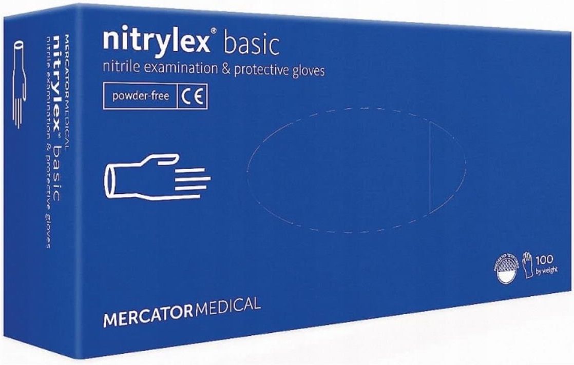 Rękawice nitrylowe medyczne - bezpudrowe Nitrylex Basic pasują na prawą i lewą rękę na zewnątrz teksturowane palce co zapobiega wyślizgiwaniu się trzymanych przedmiotów oraz ułatwia chwytność. zapewniając jednocześnie bardzo dobre czucie oraz manualność dopuszczone do kontaktu z żywnością stanowią wyrób medyczny klasy I jak i środek ochrony indywidualnej kategorii I pakowane po 100 szt. w opakowaniu zgodne z normami EN420, EN455, EN ISO 15223-1 oraz EN1041 Podsumowanie: Rękawice nitrylowe medyczne Nitrylex Basic to wysokiej jakości produkt, który zapewnia nie tylko ochronę, ale także komfort i precyzję podczas użytkowania. Dzięki zewnętrznie teksturowanym palcom, rękawice są idealne do zadań wymagających pewnego chwytu i precyzji. Dodatkowo są zgodne z normami dotyczącymi wyrobów medycznych i środków ochrony indywidualnej.