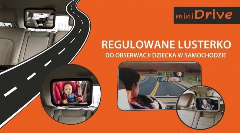 Chcesz mieć kontakt wzrokowy ze swoją pociechą podczas jazdy samochodem? Doskonałym rozwiązaniem będzie lusterko regulowane do obserwacji dziecka miniDrive. Umożliwia ono kierowcy swobodną obserwację małego podróżnika podczas jazdy autem, siedzącego w foteliku samochodowym montowanym tyłem do kierunku jazdy. Jest ono stabilne, o dużym polu widzenia, lekkim powiększeniu i łatwym montażu z możliwością pochylenia pod odpowiednim kątem. Kierujący rodzic nie traci z oczu drogi i jest skupiony na prowadzeniu pojazdu. Nie musi odwracać się do tyłu ani zatrzymywać, aby w odbiciu zobaczyć malucha śpiącego, bawiącego się, marudzącego, jedzącego lub oglądającego krajobrazy za oknem. Zalety regulowanego lusterka miniDrive : super rozwiązanie dla rodziców przewożących swoje pociechy tyłem do kierunku jazdy zaprojektowane tak, aby ułatwić widzenie dziecka siedzącego w foteliku, bez konieczności obracania głowy podczas jazdy samochodem lusterko zapewnia zapewnia dziecku atrakcję poprzez oglądanie swojego odbicia oraz widoków za oknem zapewnia bezpieczeństwo w czasie podróży i komfort dla rodzica - wystarczy spojrzeć w lusterko wsteczne by zobaczyć co się dzieje z maluszkiem lusterko łatwe w montażu, montowane do zagłówka na tylnym fotelu z możliwością regulacji kąta wymiary lusterka: 29,8x18,7 cm Instrukcja montażu : odepnij pasek i owiń go wokół zagłówka, który znajduje się naprzeciwko miejsca, w którym usiądzie dziecko i zapnij zapięcie pociągnij pasek, aby przymocować lustro do zagłówka usiądź na siedzeniu kierowcy w normalnej pozycji, za pomocą asystenta (jeśli jest dostępny) wyreguluj lusterko na tylnym zagłówku, aby uzyskać najlepszy widok na dziecko Ostrzeżenie! Nie należy ustawiać lustra w pozycji zakłócającej widok w tylnej szybie. Szczegóły produktu Rozmiar 29,8x18,7 cm